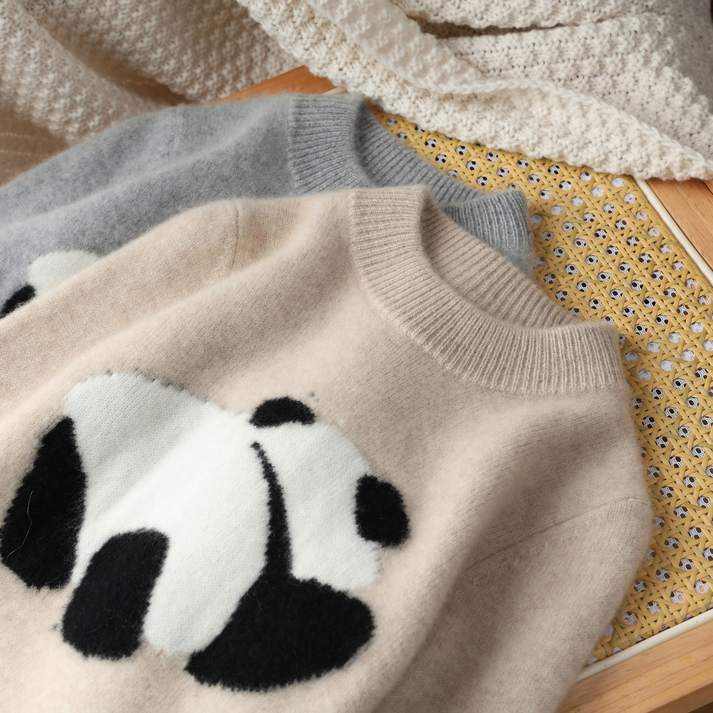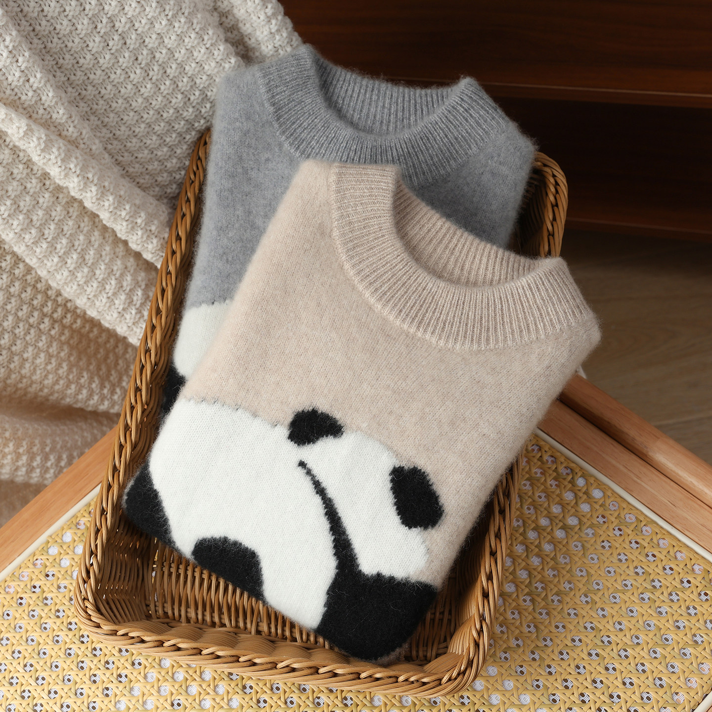 儿童羊毛衫男童卡通熊猫毛衣女童趴趴熊针织衫宝宝加厚内搭打底衫