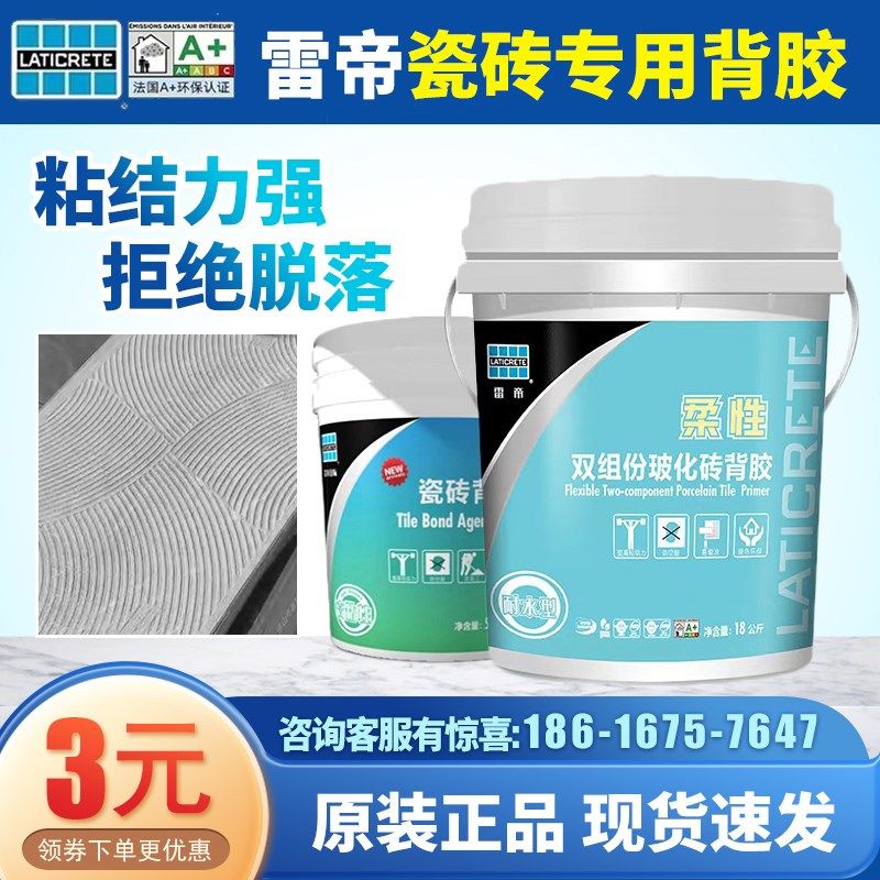 雷帝瓷砖背胶玻化砖全效背涂胶泥强力墙砖粘合剂桶装大砖背胶5kg