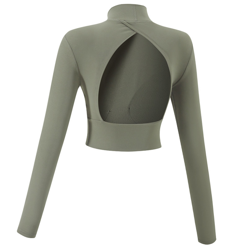 健身女孩高领运动上衣跑步含胸垫紧身显瘦性感美背瑜伽服长袖秋冬