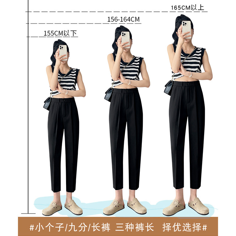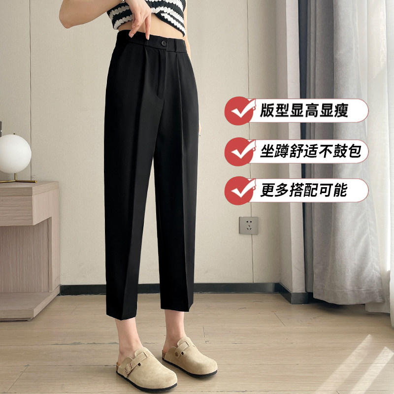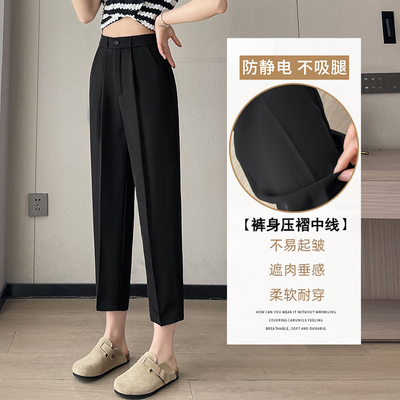 黑色西装裤女春夏薄款胖MM垂感直筒烟管裤小脚休闲高腰九分八分裤