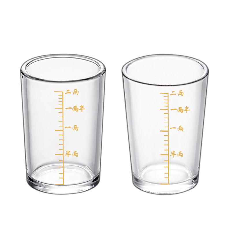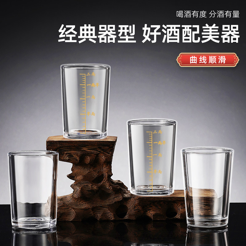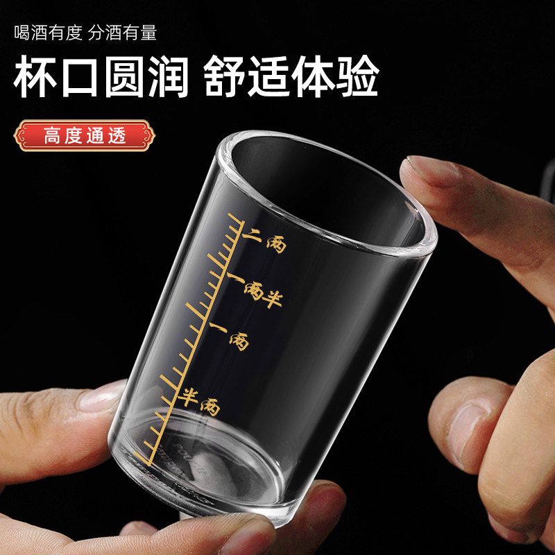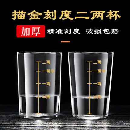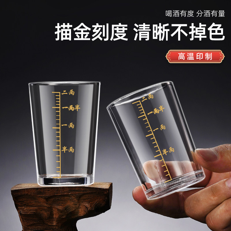 钢化玻璃烈酒一口杯2两带刻度大号白酒杯家用酒杯二两杯酒具套装