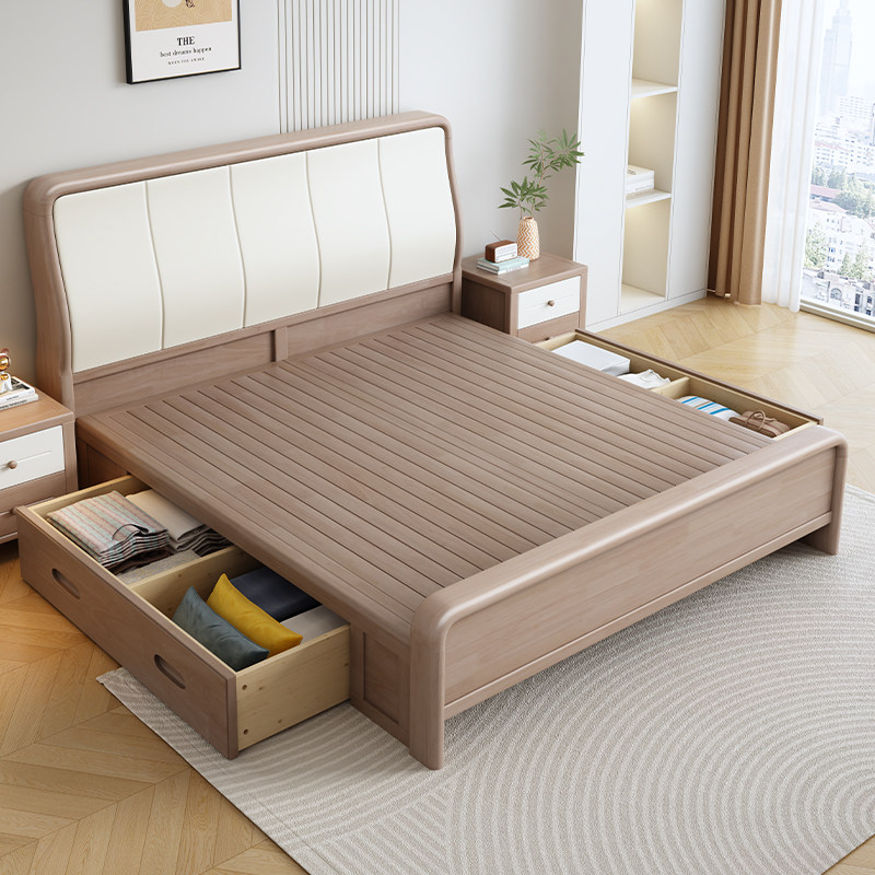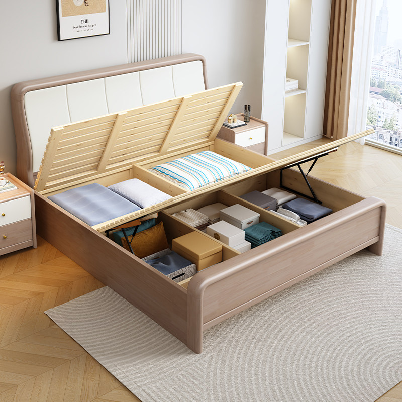 北欧全实木床1.5米现代简约轻奢床主卧室1.8m单双人床气压储物床