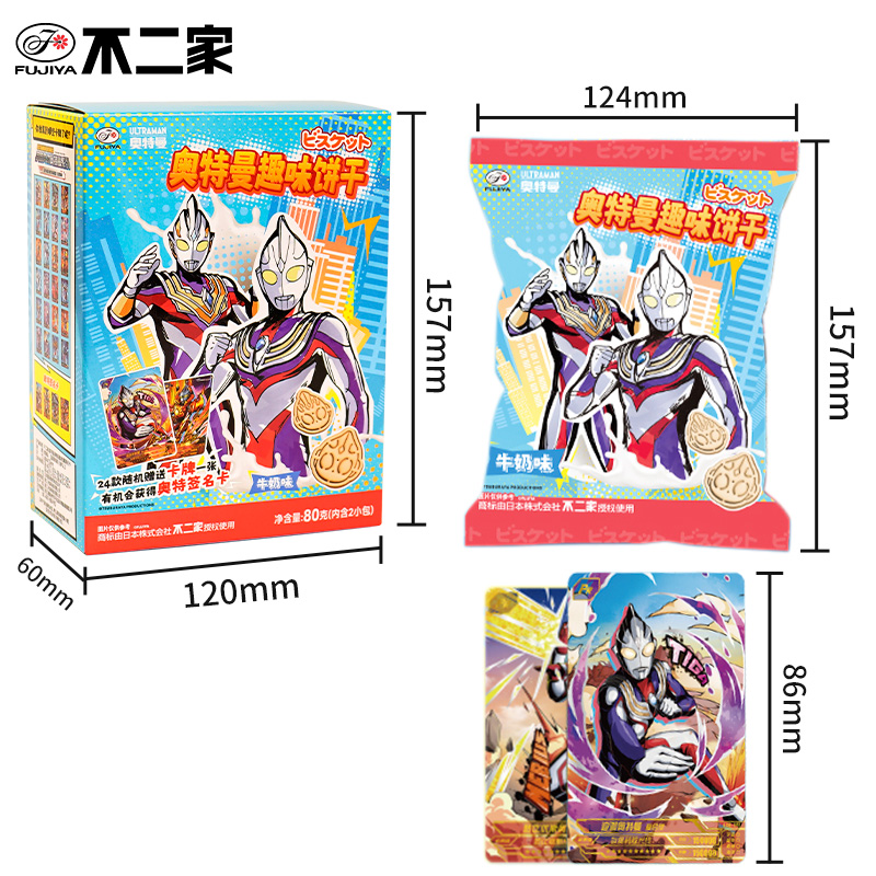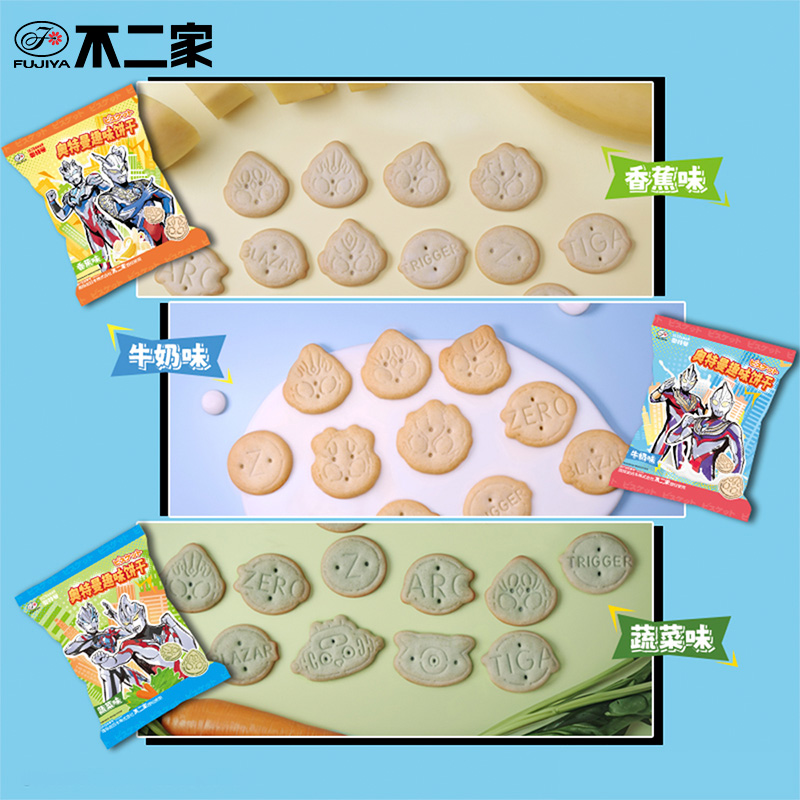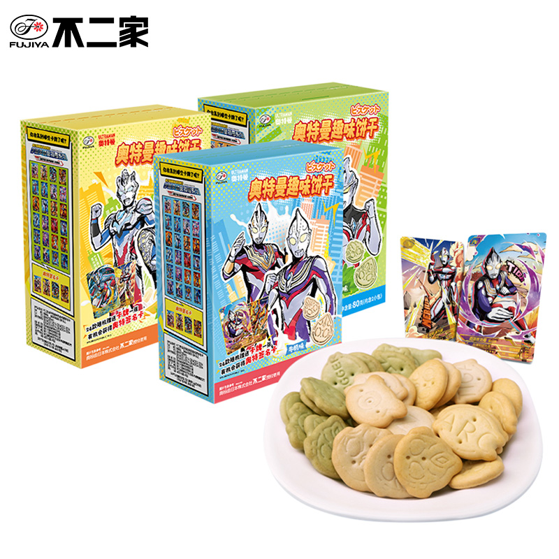 不二家奥特曼趣味饼干80g牛奶香蕉蔬菜味儿童学生休闲零食送卡片