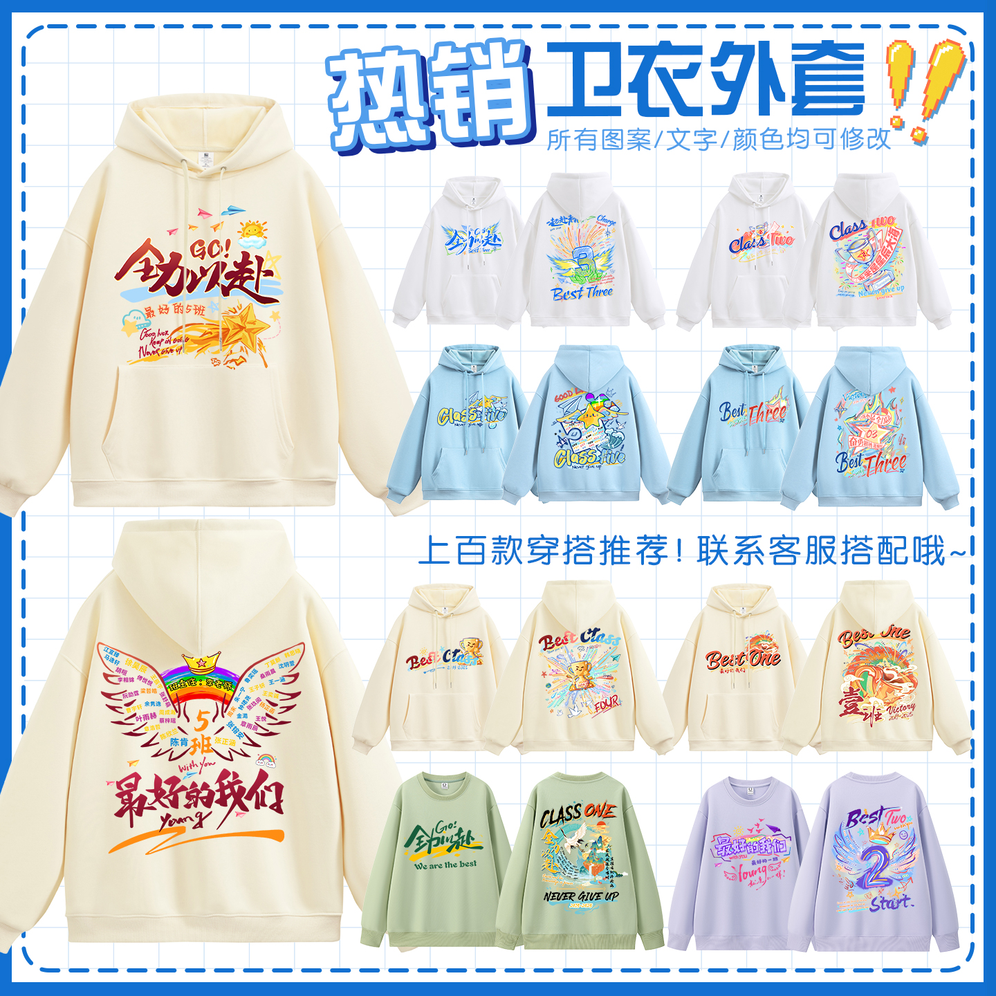 班服卫衣定制风衣外套连帽衫运动会小学初中高中学生纯棉套装订做