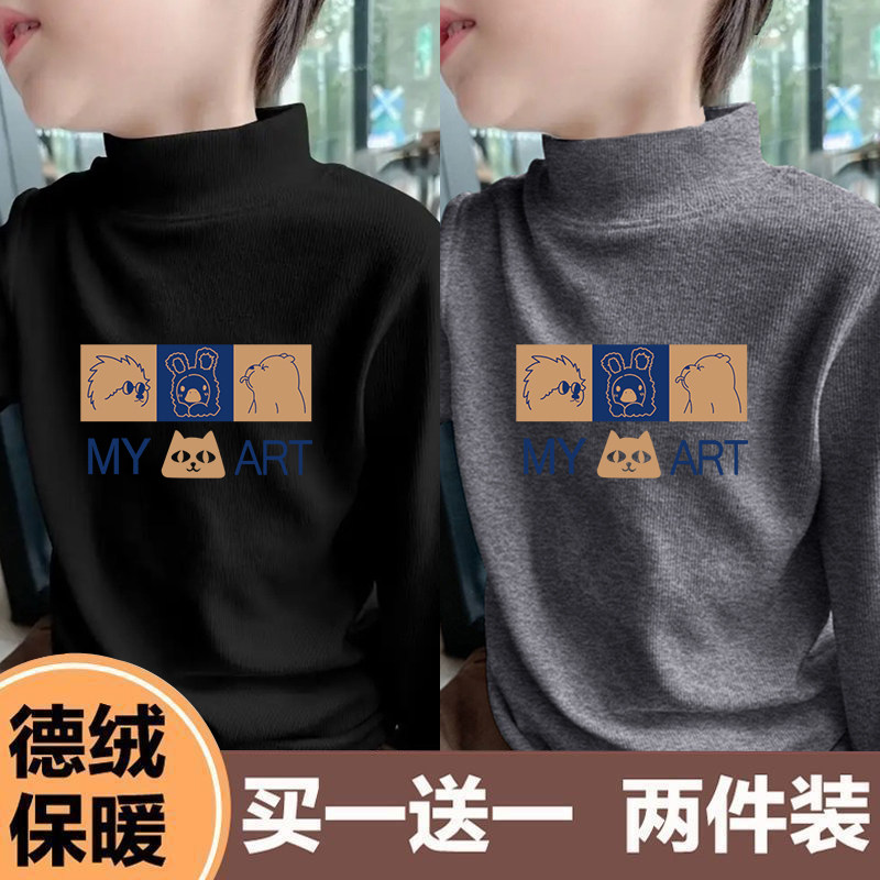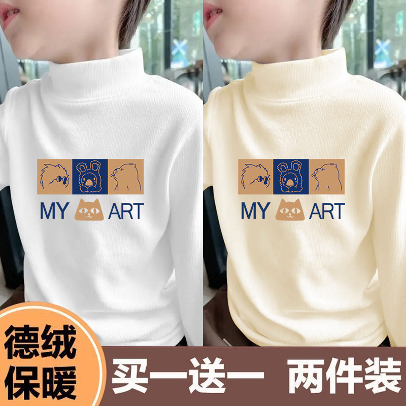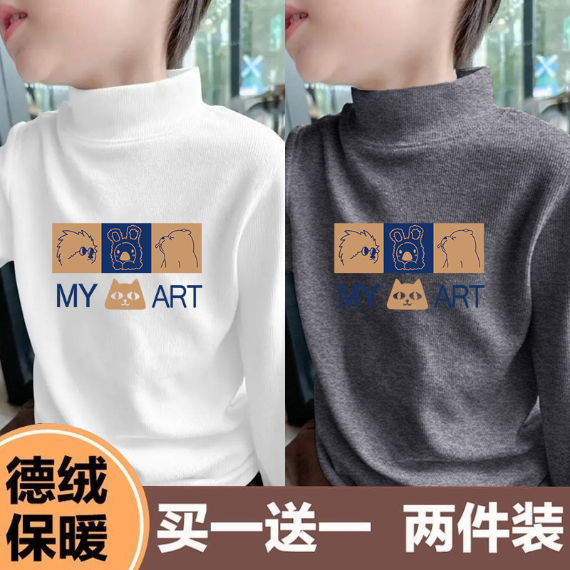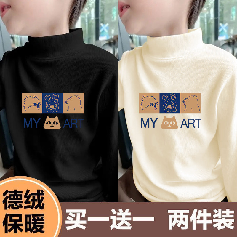 男童洋气德绒半高领保暖上衣秋冬季新款打底衫儿童内搭长袖T恤潮