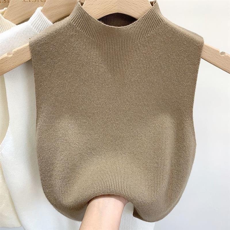 针织吊带背心女西装内搭打底衫半高领秋冬季韩版复古气质无袖上衣