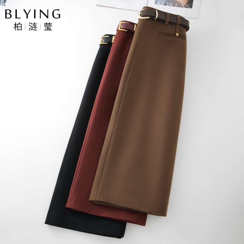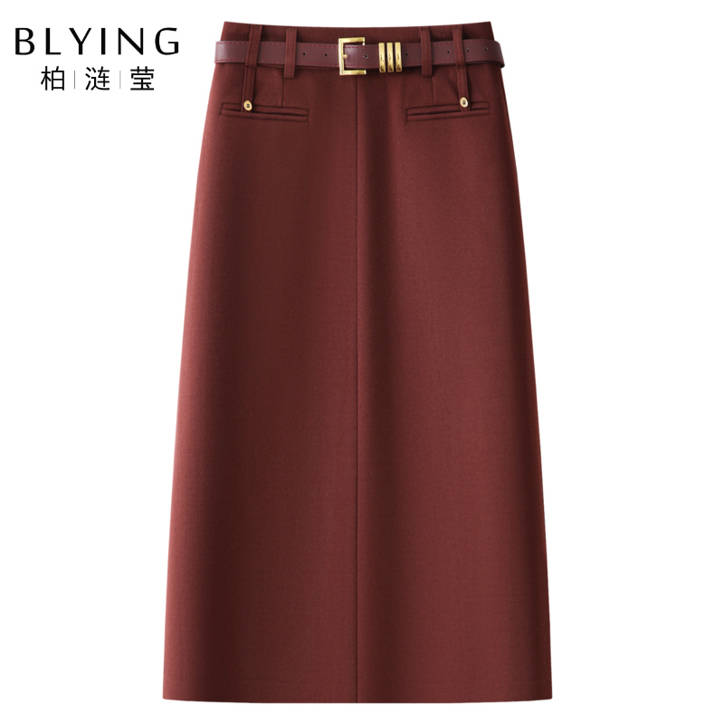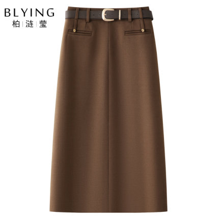 棕色毛呢直筒半身裙女2025新款秋冬季A字包臀裙梨型身材遮胯半裙