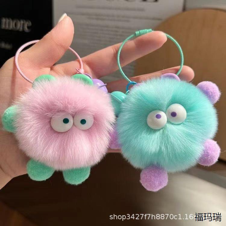 创意小煤球毛绒钥匙扣可爱卡通玩偶汽车包包挂件节日小礼品
