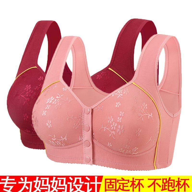 本命年妈妈内衣女棉质前开扣中老年文胸罩聚拢上托无钢圈运动背心