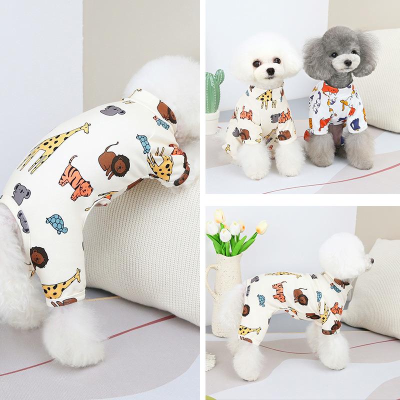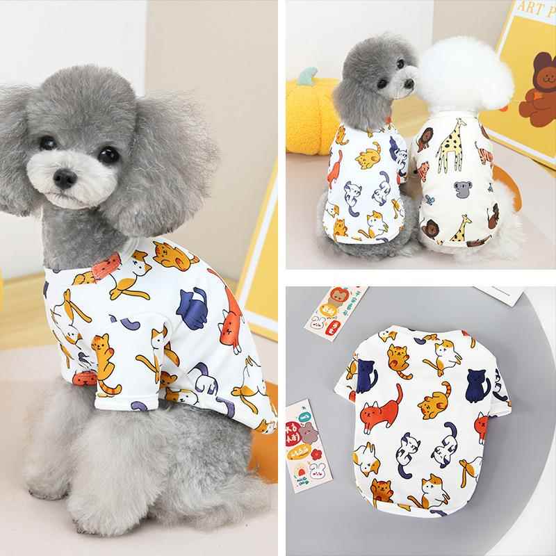 宠物春款新款服装狗狗卡通T恤泰迪比熊夏季透气居家服四脚衣