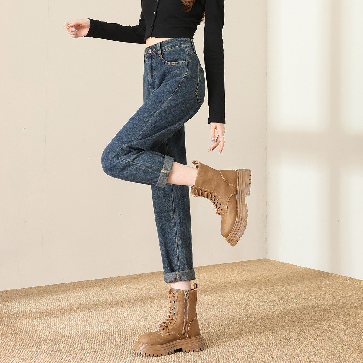 班尼路牛仔裤女秋季新款直筒小脚哈伦裤高腰显瘦时尚休闲老爹裤J