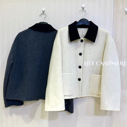 娃娃领双面羊绒大衣短款小香风