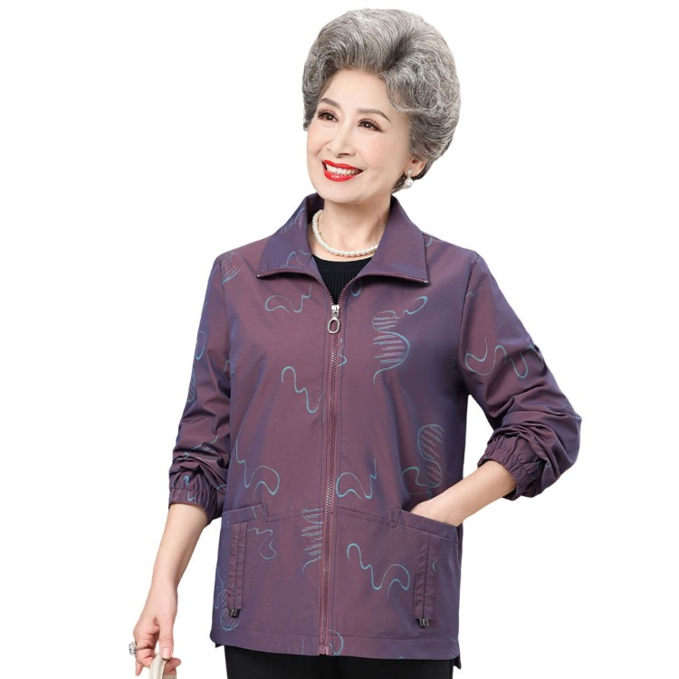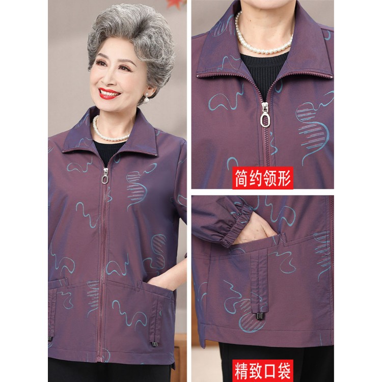 妈妈春装风衣新款短款中老年人外套女春秋季奶奶薄夹克老太太婆婆