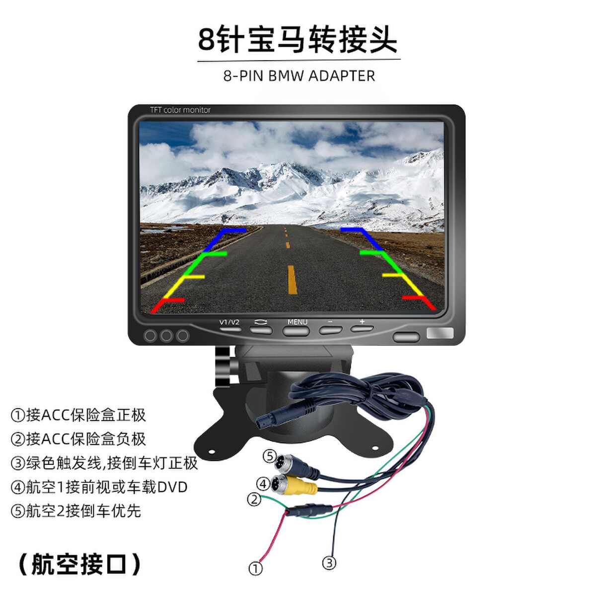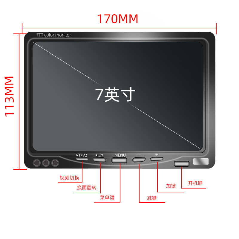 7寸台式高清车载显示器货车倒车影像显示屏两路输入倒车优先24v