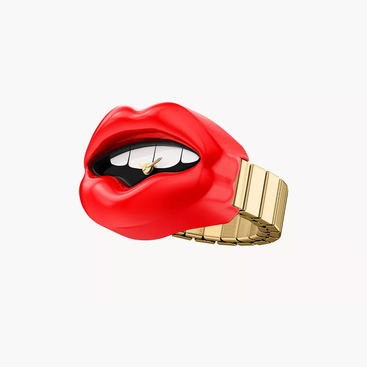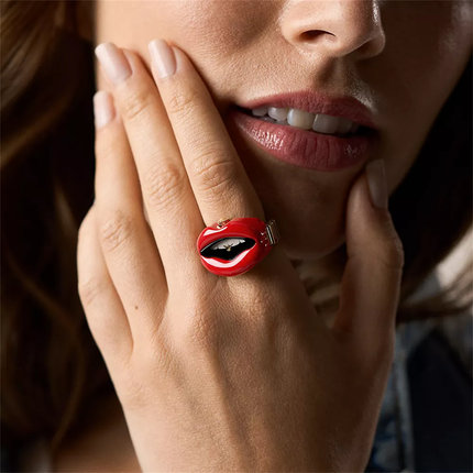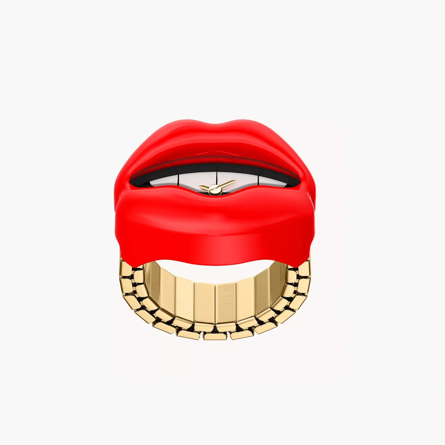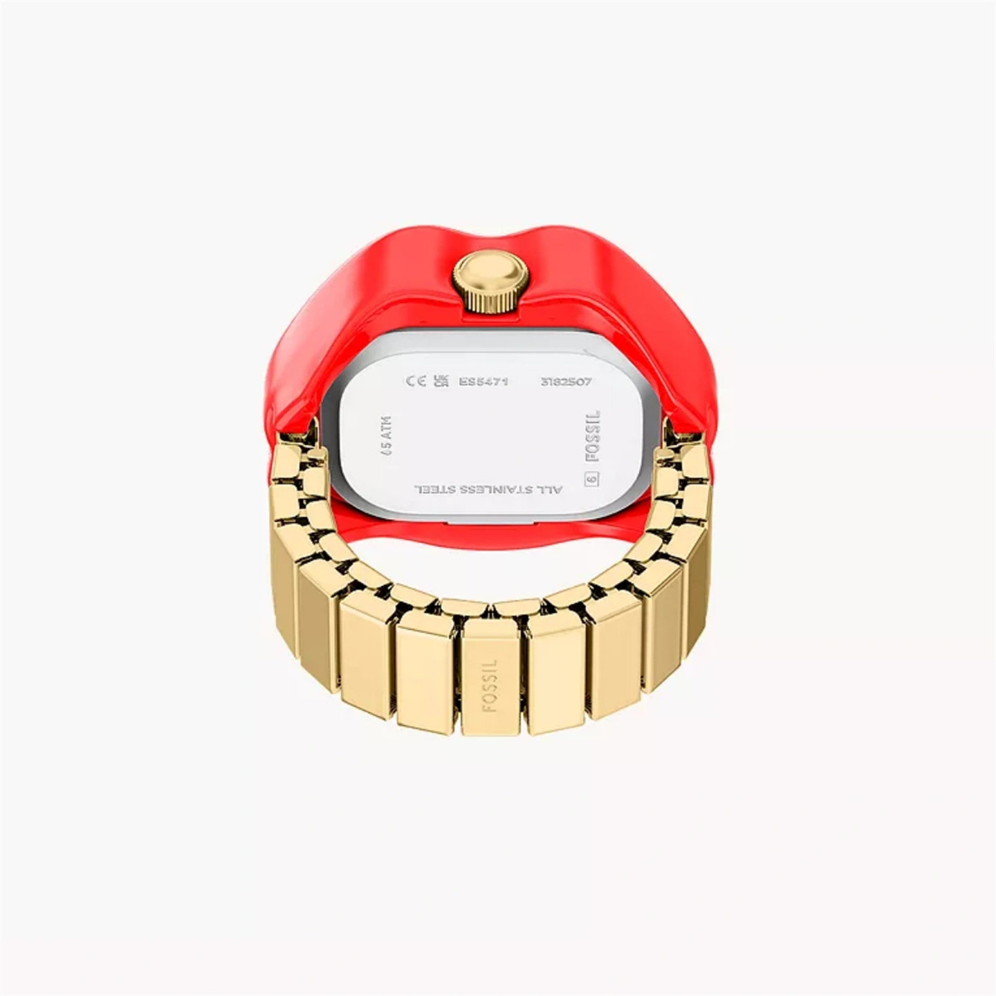 美国代购Fossil化石戒指表双针红唇外形金色不锈钢表带时尚女手表