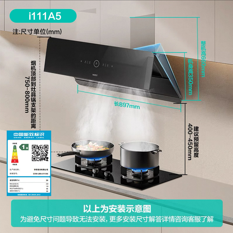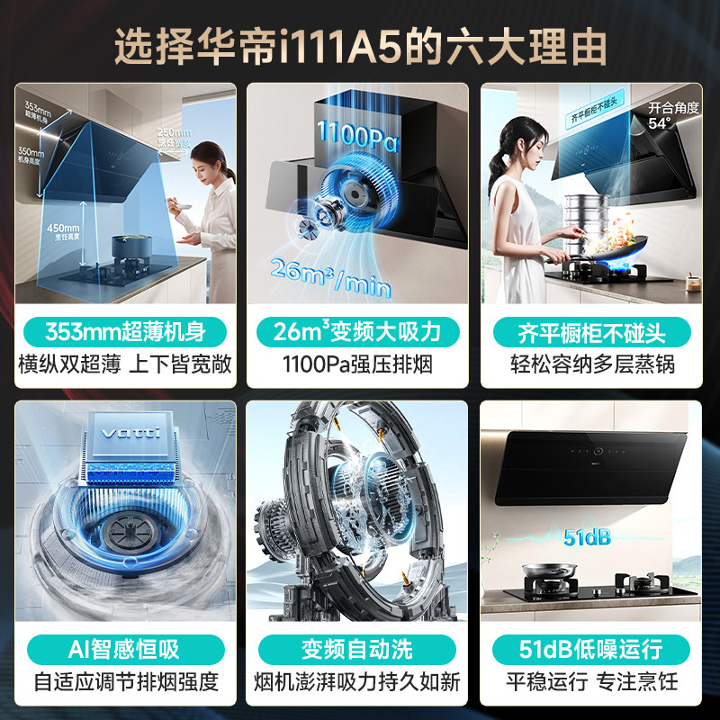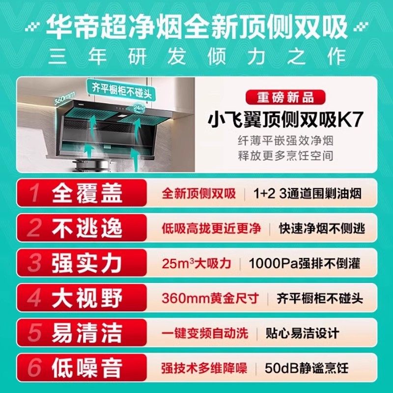 华帝超薄变频抽油烟机A5家用侧吸大吸力顶侧双吸自动洗官方旗舰店