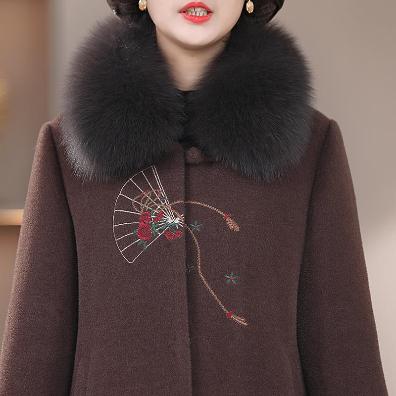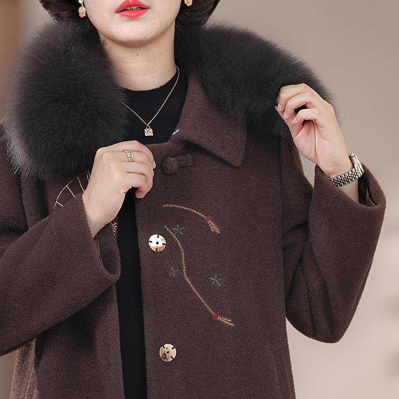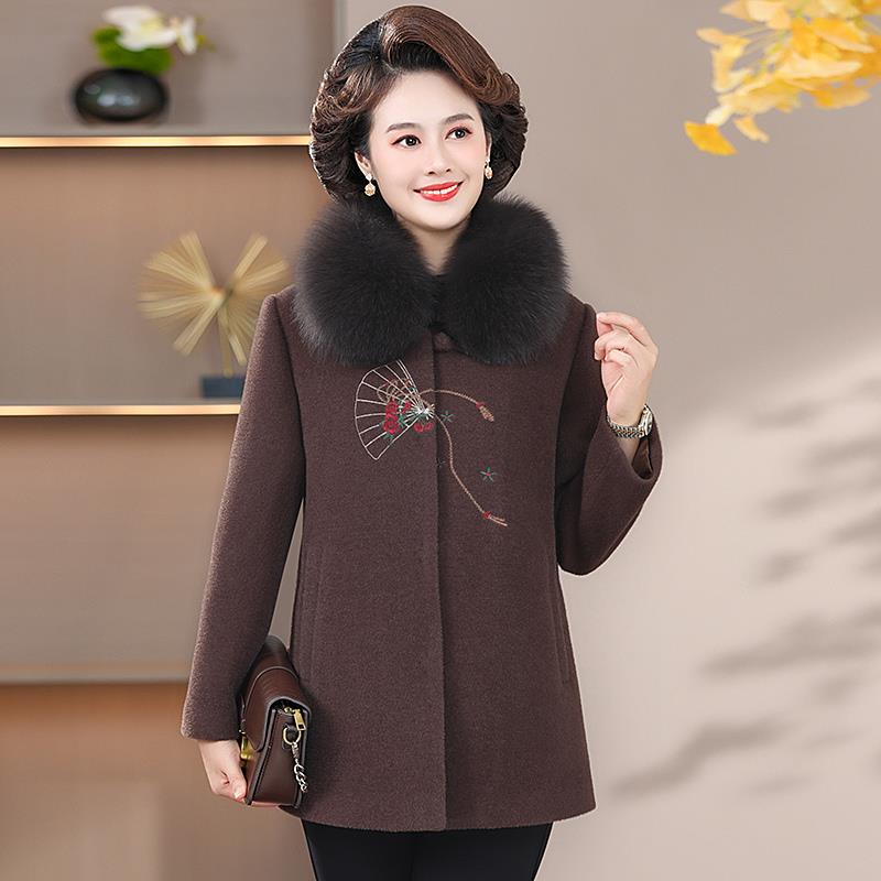 2023新款中老年女装秋冬季中式雪貂绒毛呢外套妈妈装紫色呢子大衣