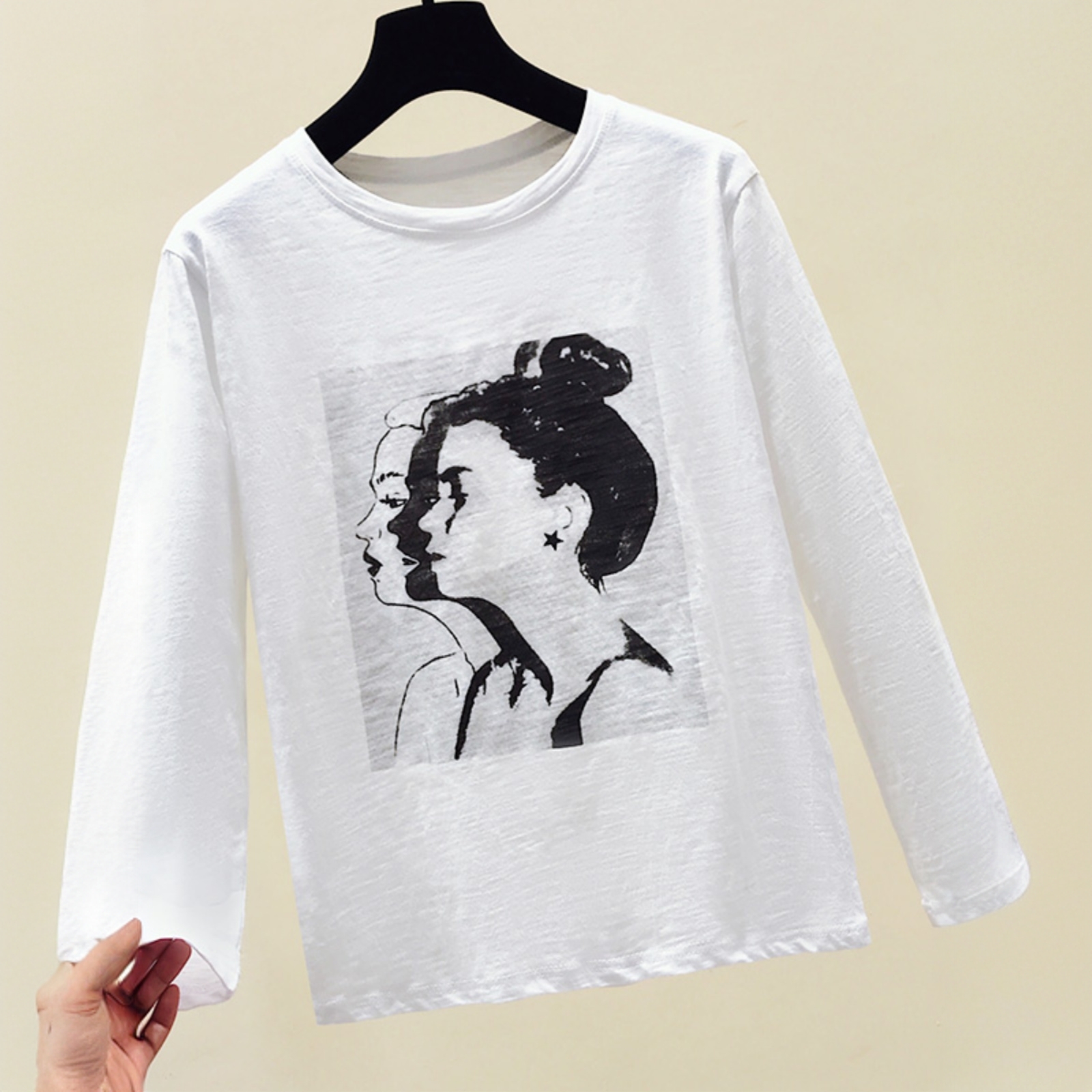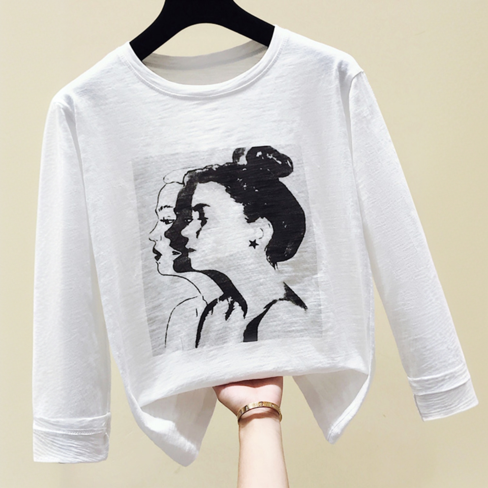 白色内搭打底衫春装2025年新款竹节棉t恤女长袖圆领宽松外穿上衣