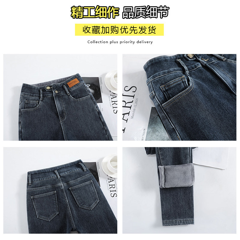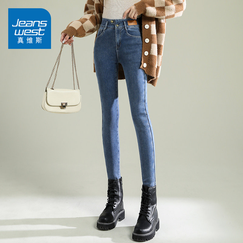 KZ真维斯潮牌铅笔加绒牛仔裤女修身显瘦高腰弹力百搭秋冬2025新款