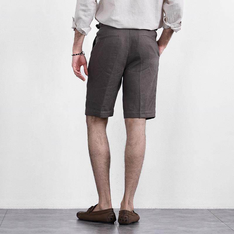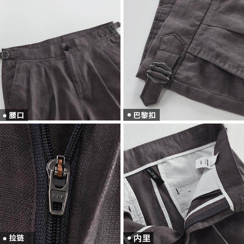 夏季意式亚麻西装短裤男士时尚宽松直筒裤男轻商务休闲 五分裤