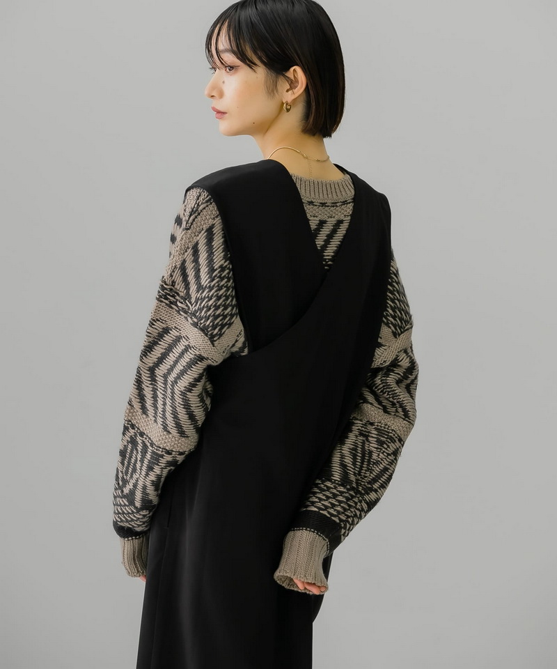 K8F23春 知性飒美 优雅有品!后背交叉设计中长款V领无袖连衣裙