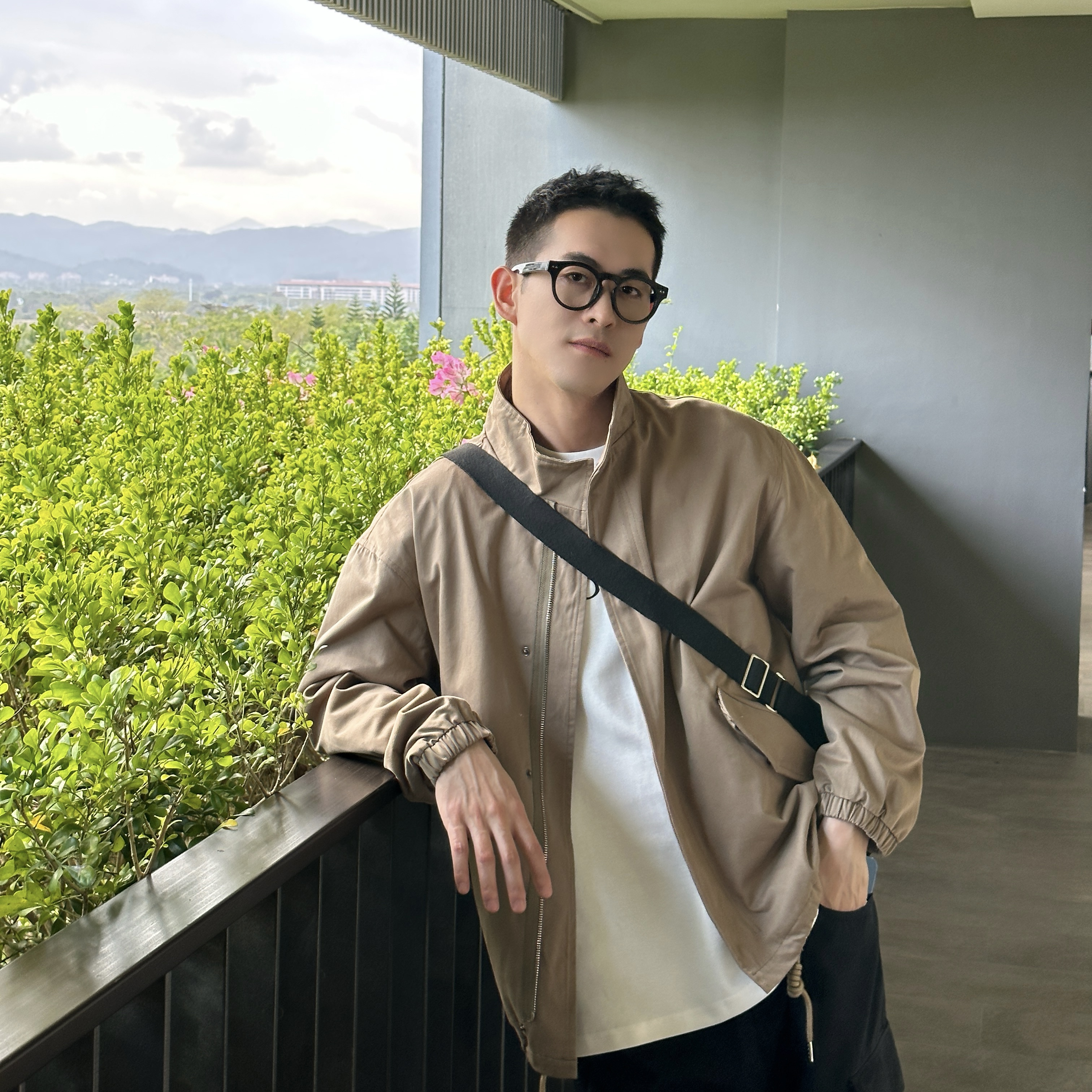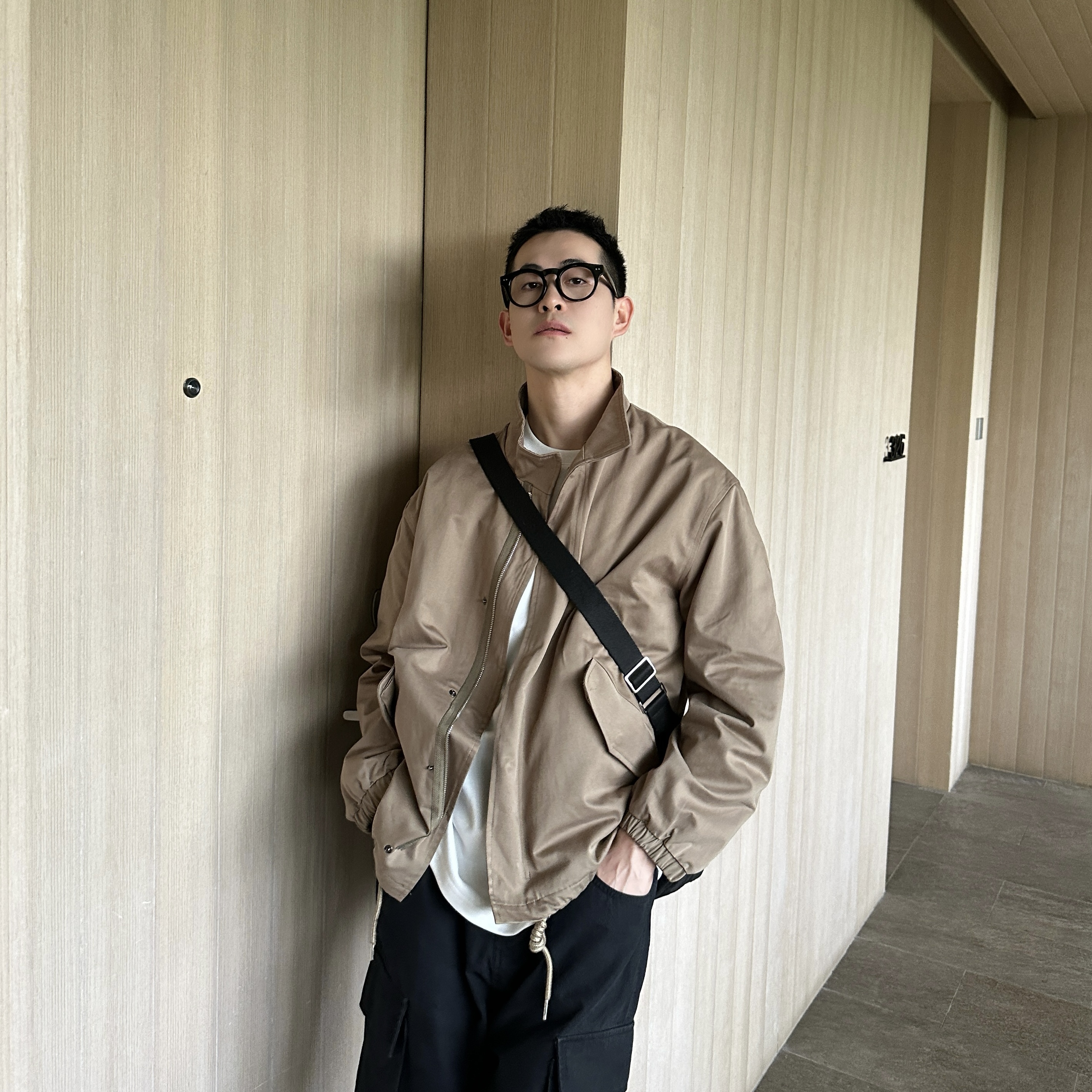 王几又 春秋季纯色立领风衣外套男美式休闲宽松高级感夹克上衣