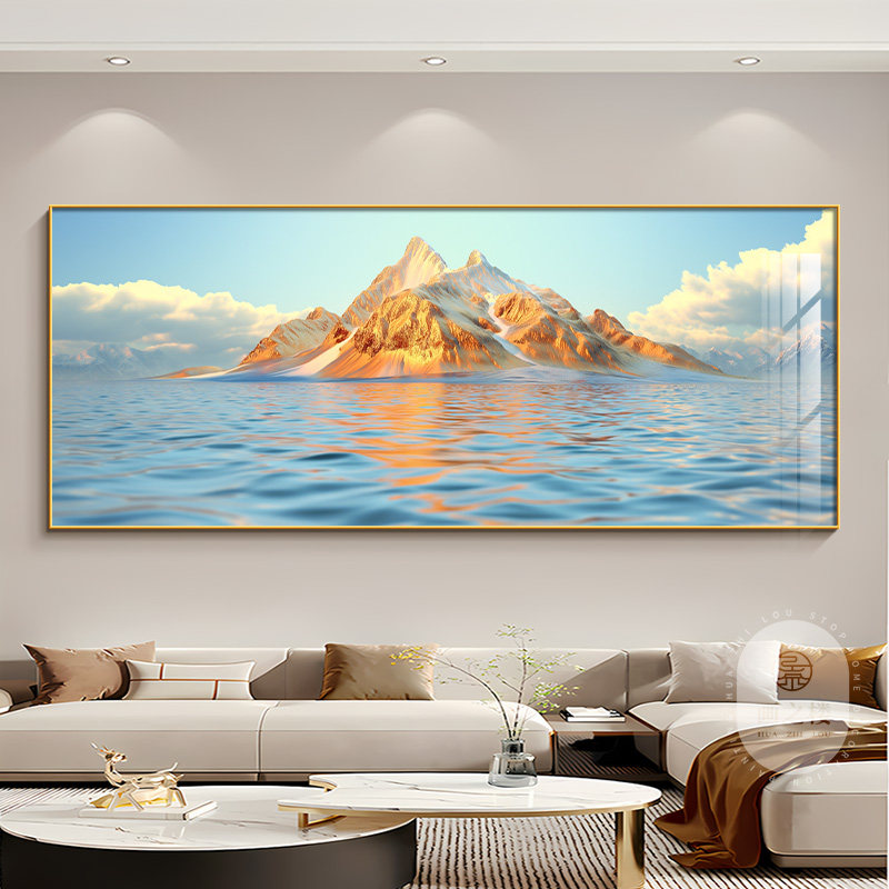 日照金山客厅装饰画背靠金山聚财山水画背景墙大气挂画办公室壁画