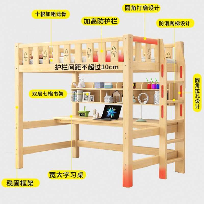 高架床床子母床双层上下床大人上床下桌儿童高低床全成人单人实木