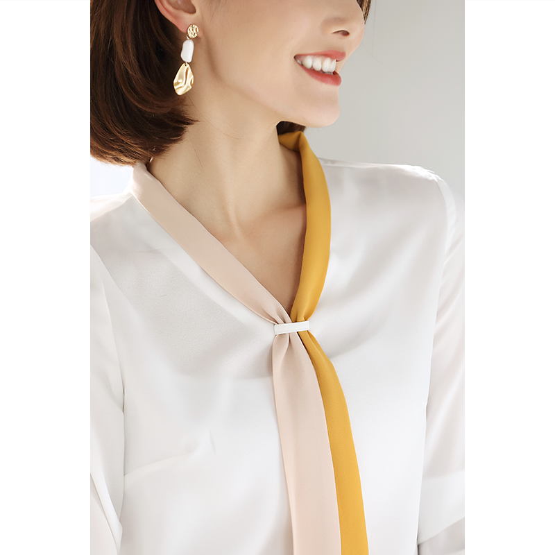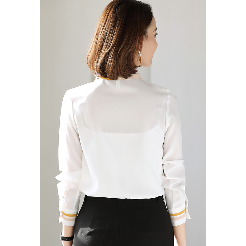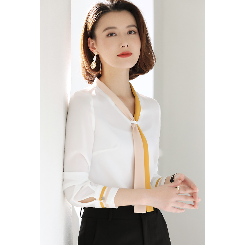 飘带白色雪纺衬衫女长袖时尚上衣洋气设计感春秋法式别致职业衬衣
