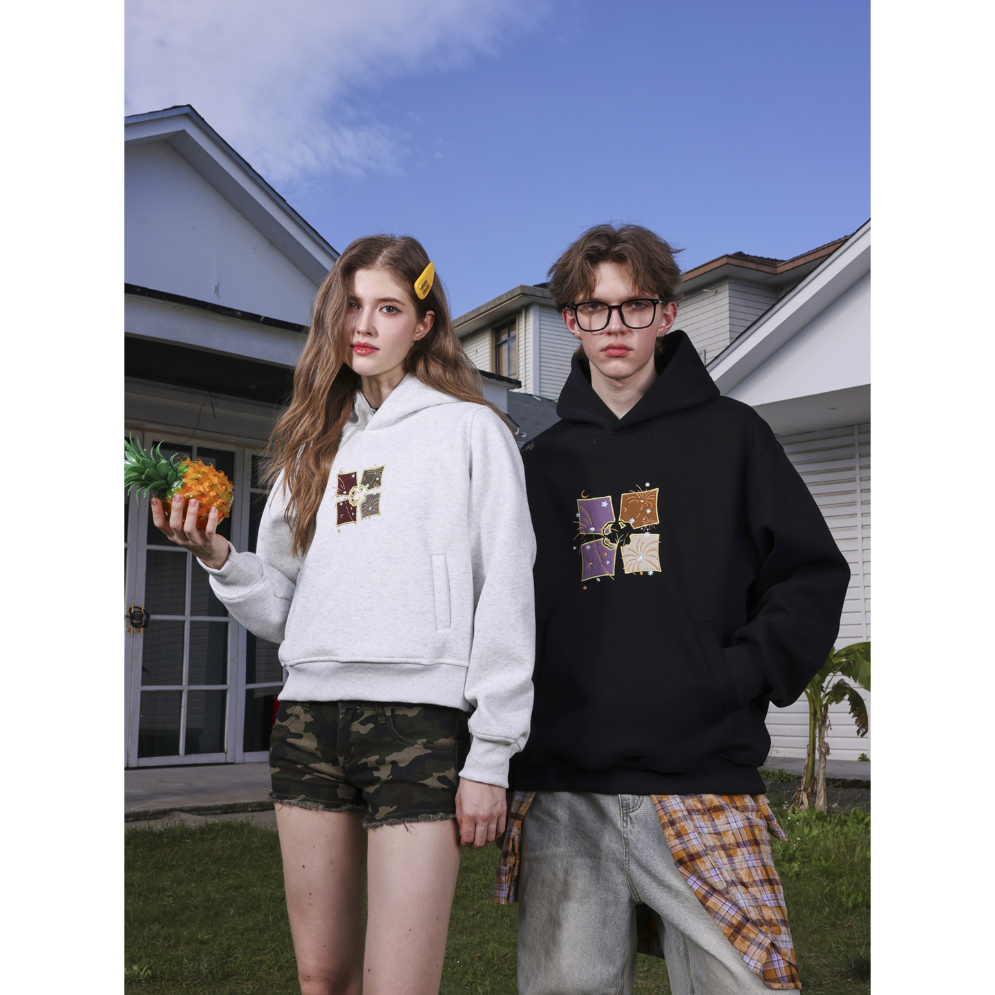 MANYSTON美式刺绣连帽套头卫衣男生款春秋季潮牌重磅情侣帽衫外套
