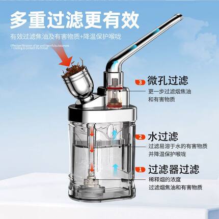 水烟壶双重过滤器全套水烟斗男士烟嘴四用水烟筒烟袋锅烟丝草专用
