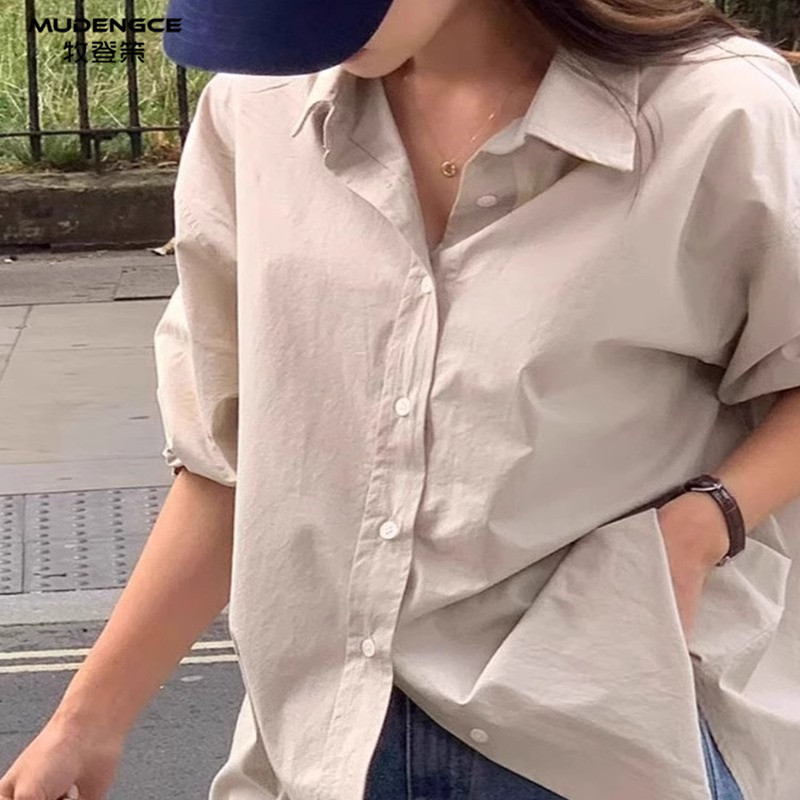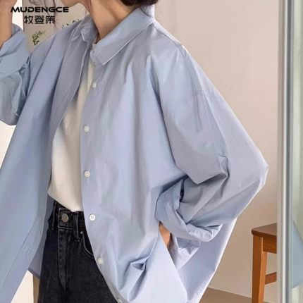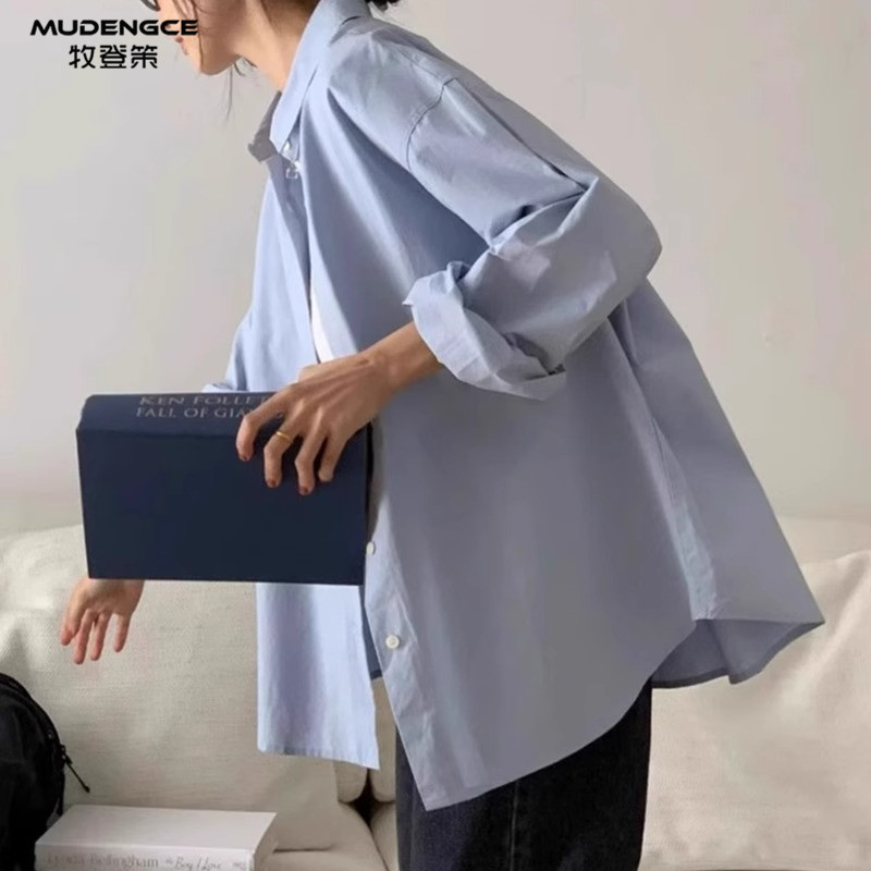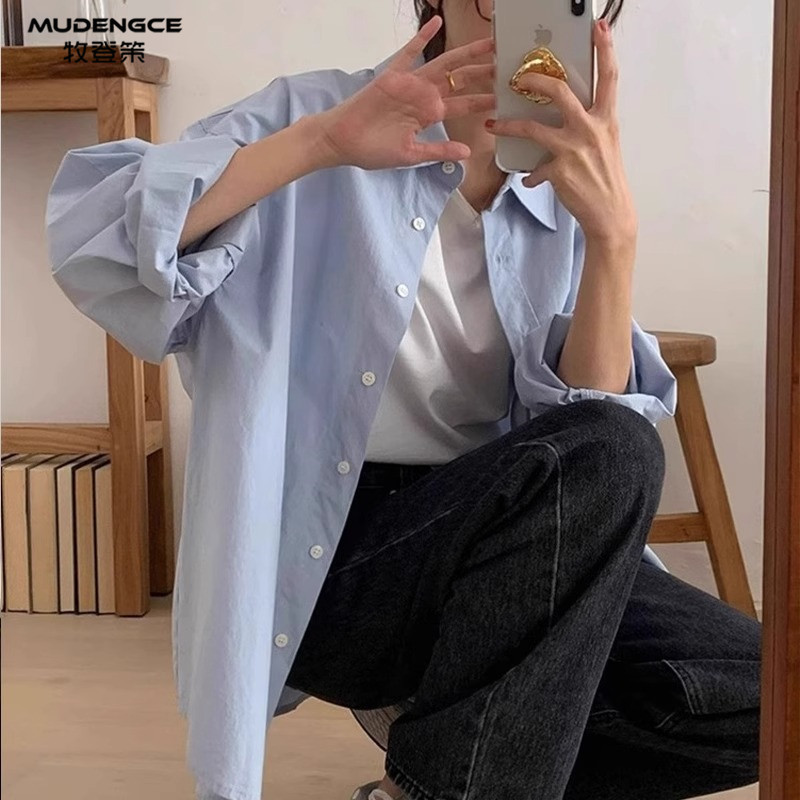 韩版蓝色防晒衬衫女2025春夏新款小个子薄款长袖外搭宽松休闲衬衣