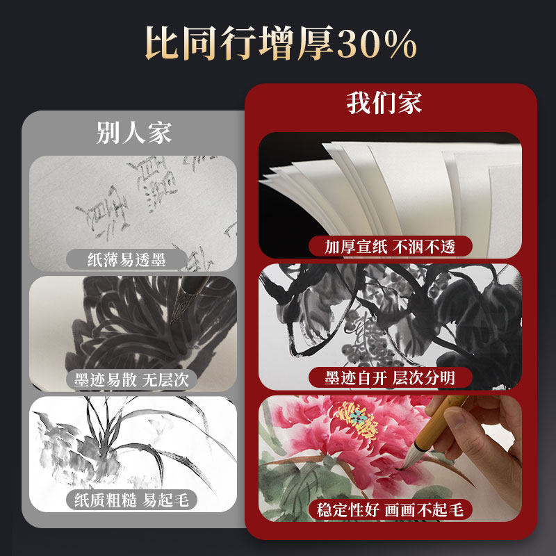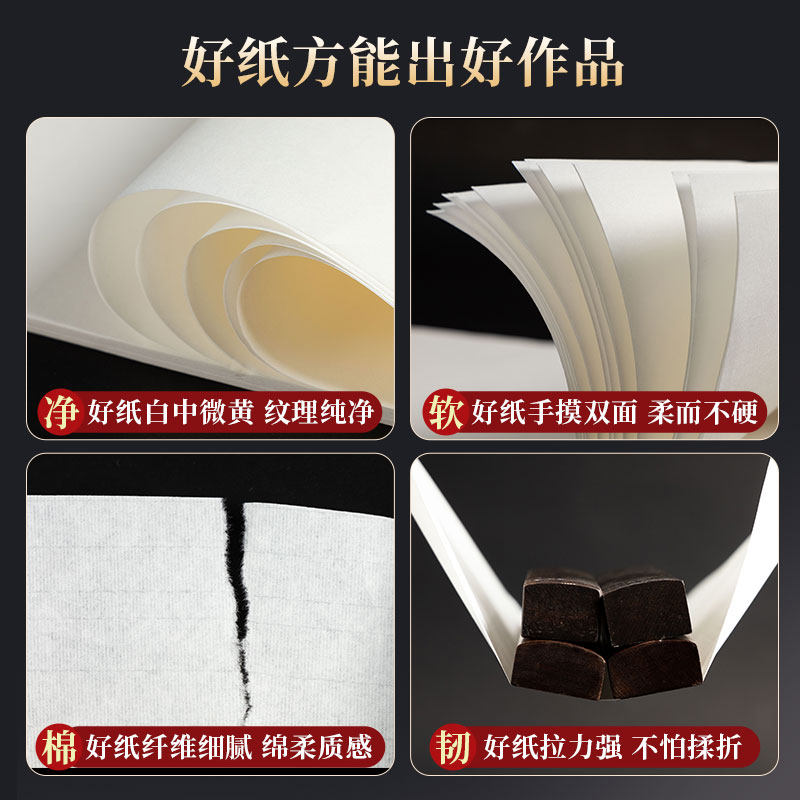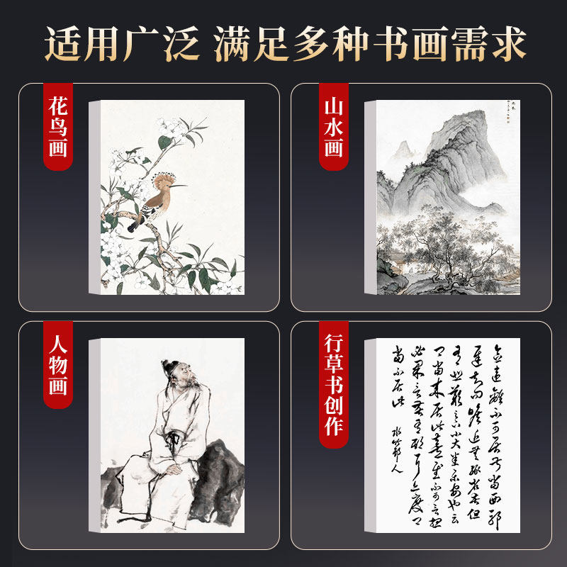 加厚宣纸国画专用纸4K8k生宣纸水墨画半生熟画画工笔画熟宣4开8开书法作品纸初学学生毛笔字练习纸中国画美术