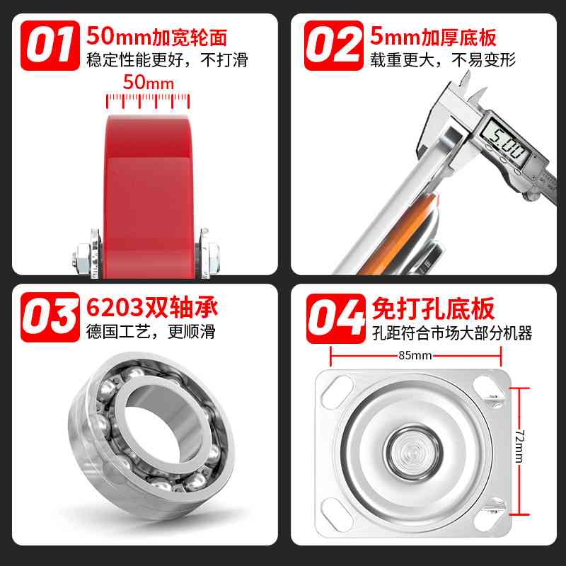 6寸超重型万向轮轮子脚轮铁芯pu聚氨酯8寸重型脚轮4寸工业承重5寸
