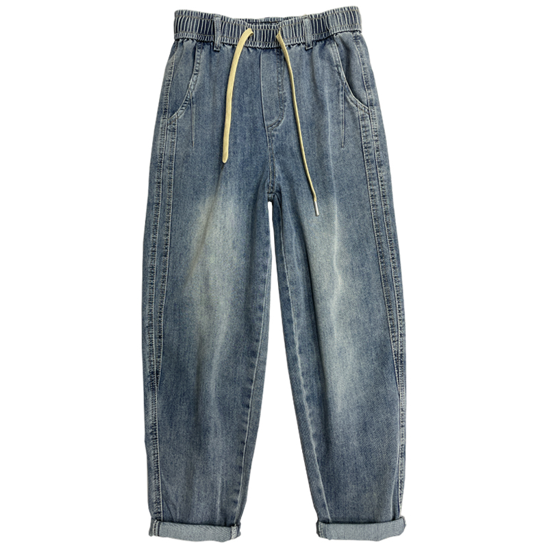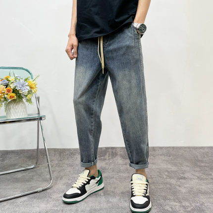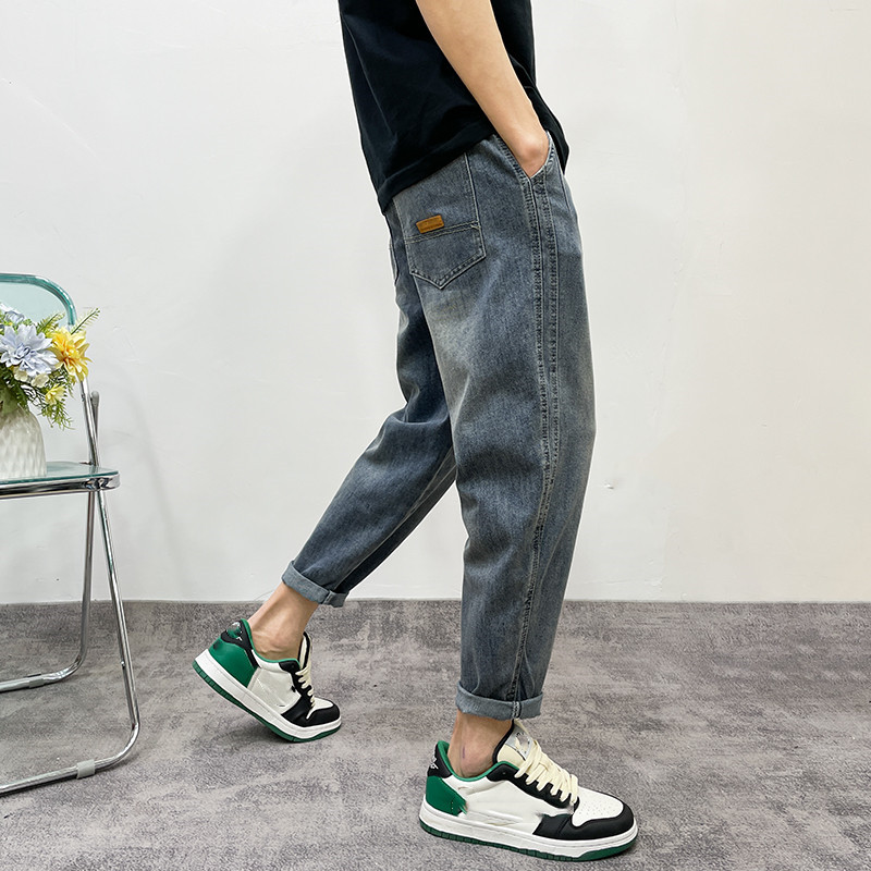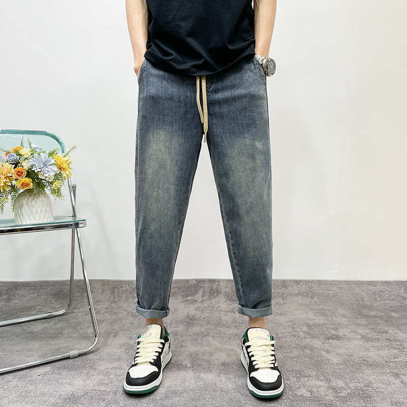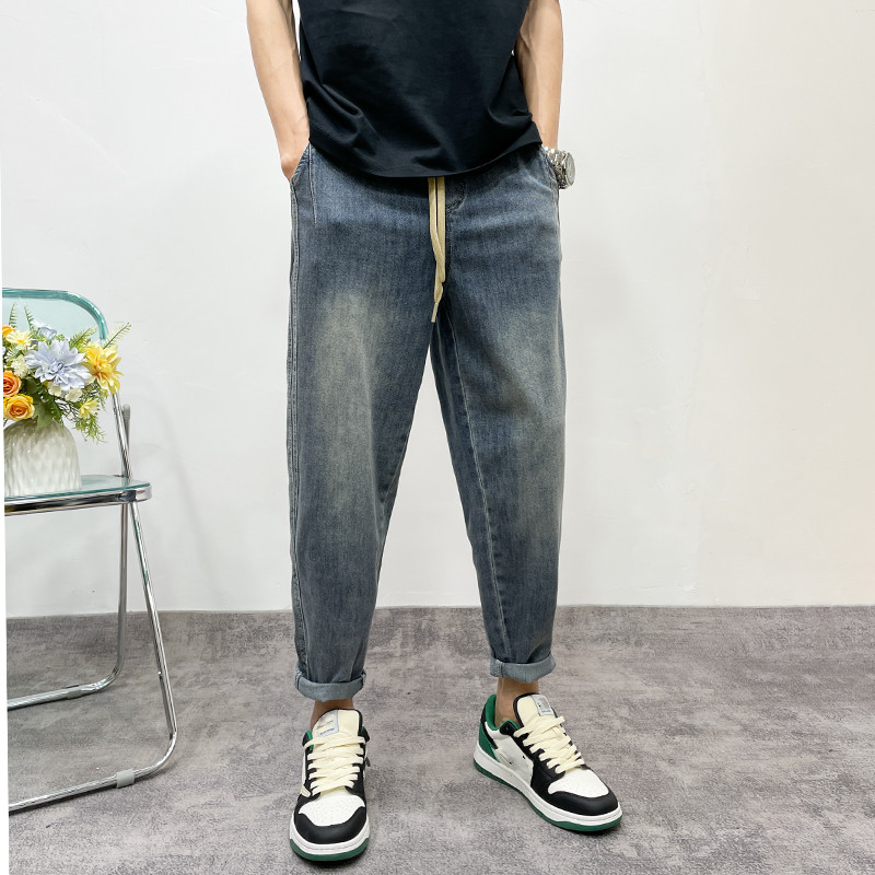 裤子男春夏款复古牛仔裤男士宽松直筒潮牌痞帅小脚裤百搭九分裤子