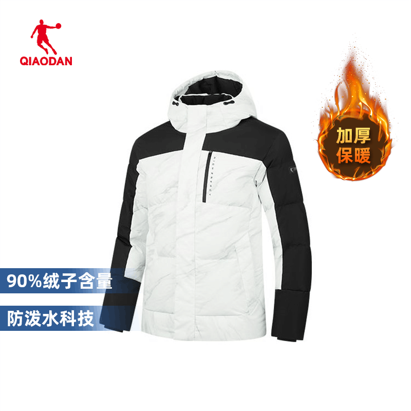 乔丹羽绒服男冬季新款保暖防风防泼水连帽短款外套QDEGM3254078B