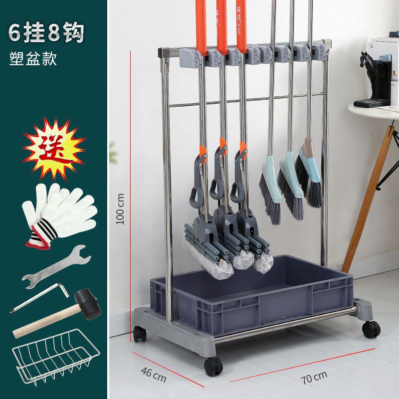 落地式不锈钢移动拖把架墩布沥水收纳置物清洁卫生间挂钩扫把架子
