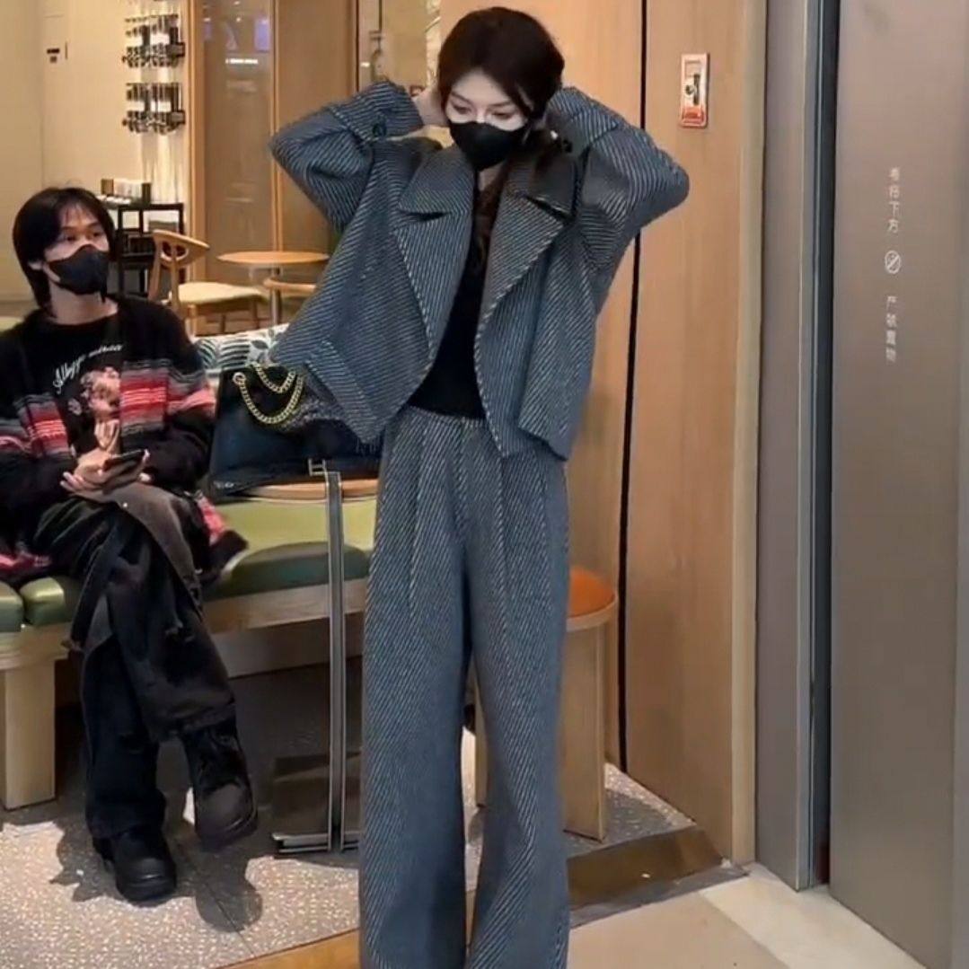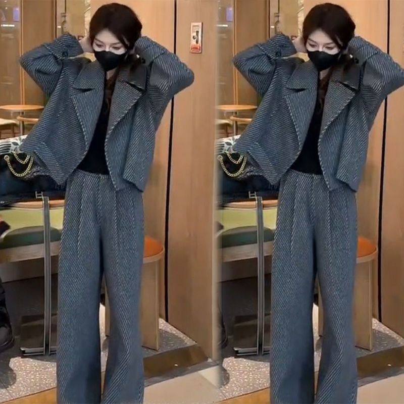 高端潮流洋气高档时尚套装秋冬季新款气质名媛百搭外套+阔腿裤女