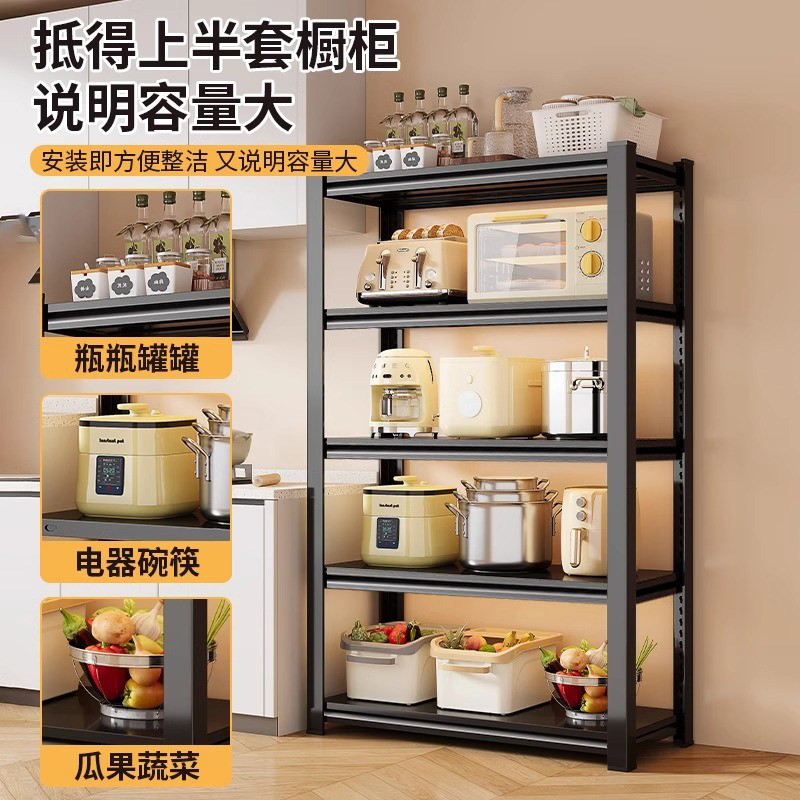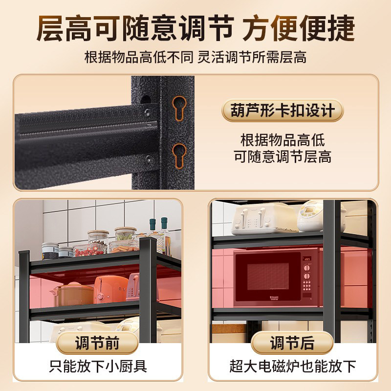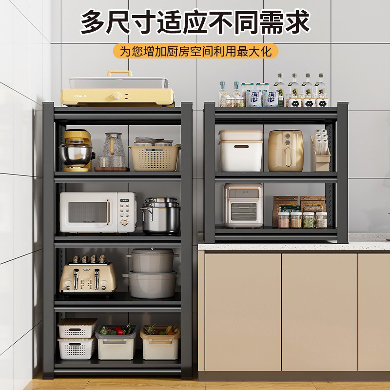 厨房置物架落地式多层收纳多功能储物柜钢制微波炉架锅架家用货架