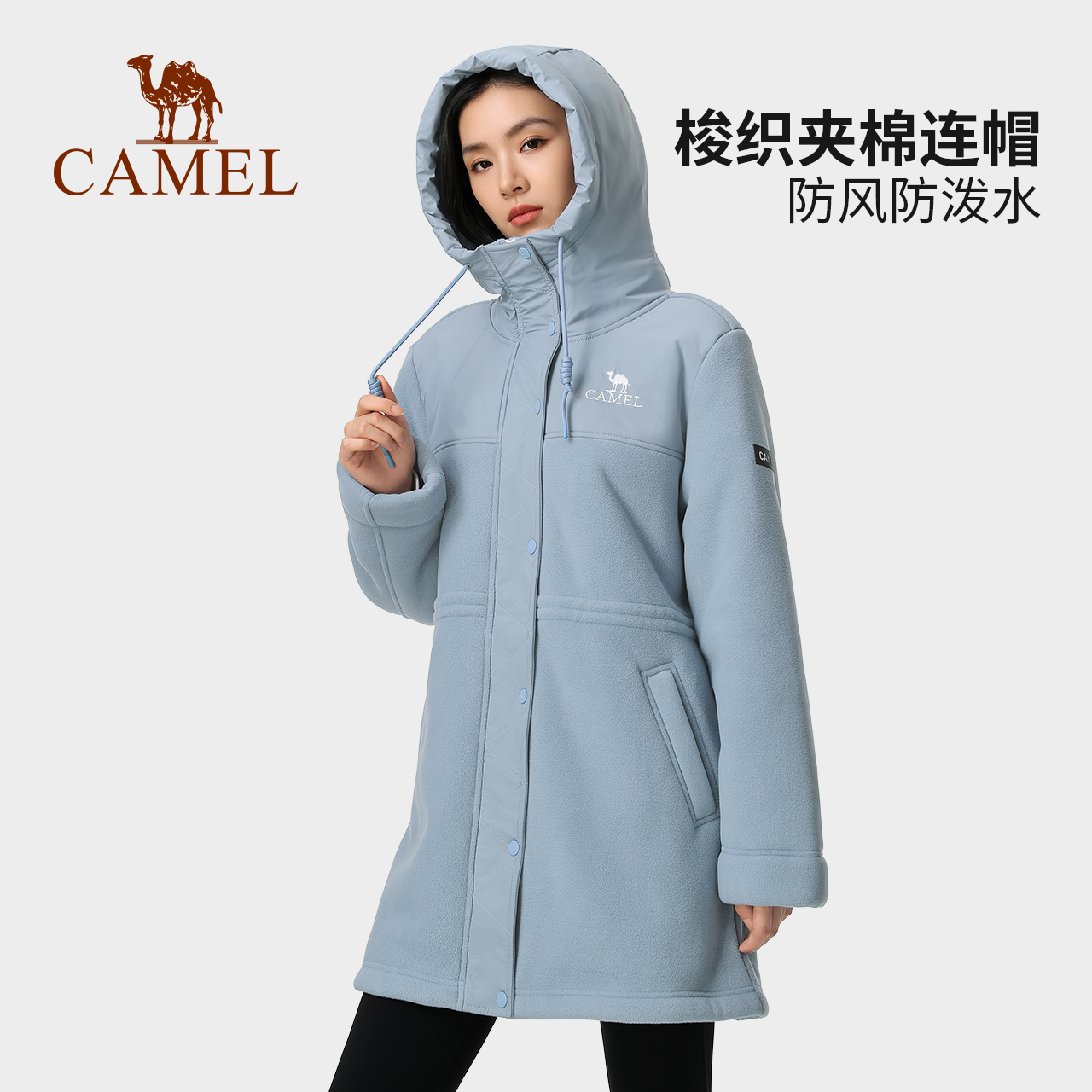骆驼户外中长款风衣女抓绒衣2025秋冬新款羊羔绒加厚保暖连帽外套