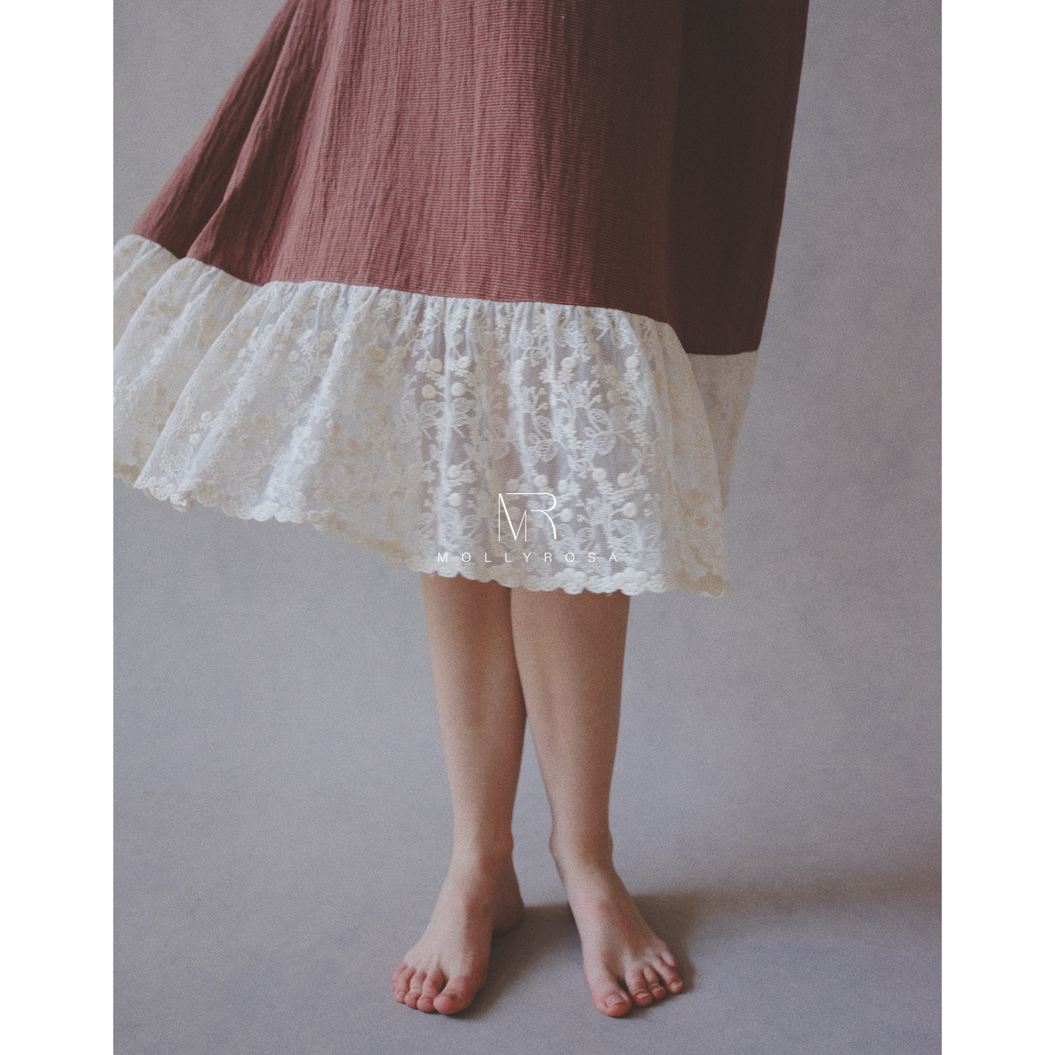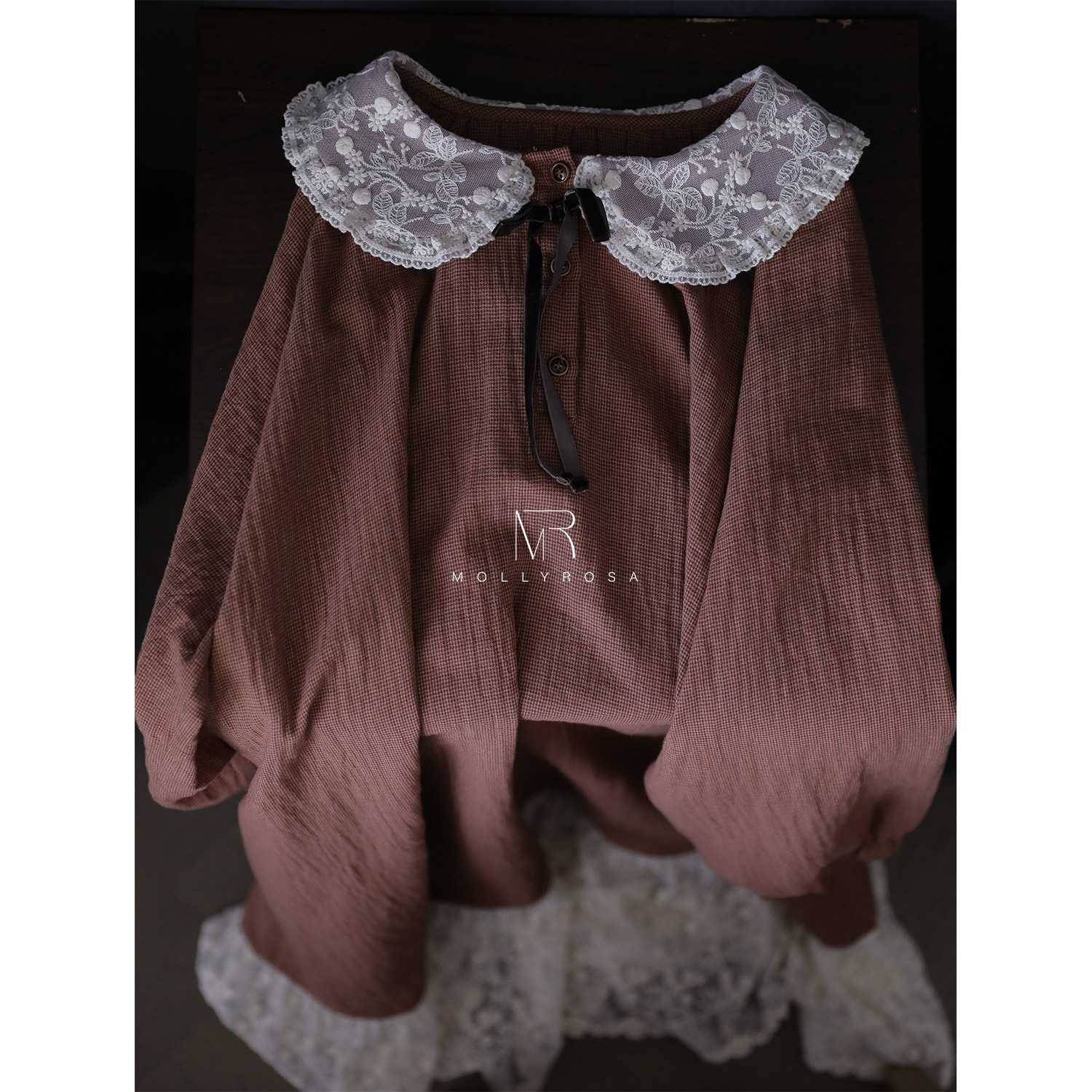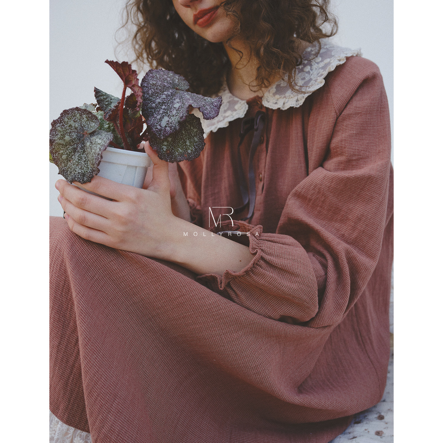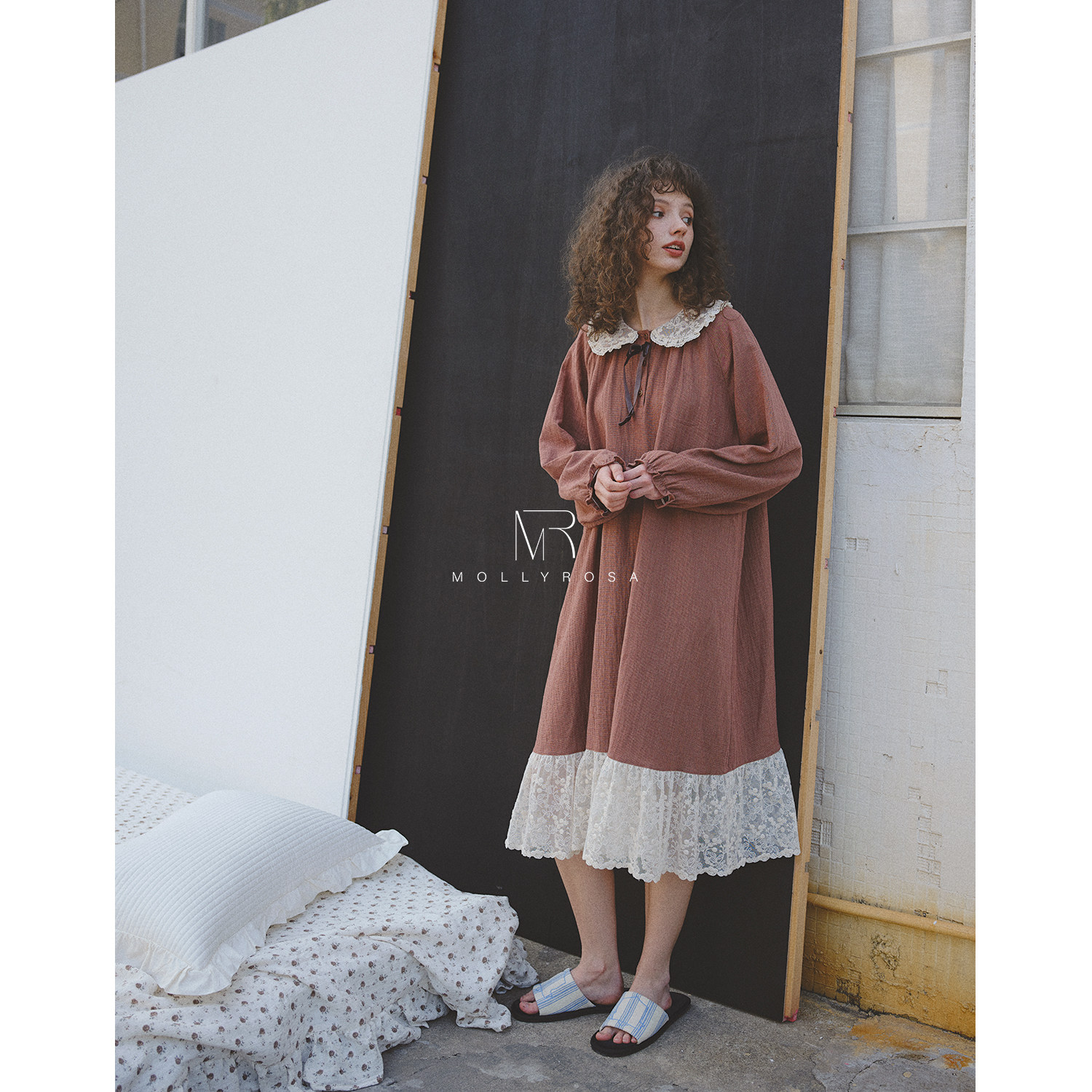 MollyRosa茶褐色|甜美纯棉睡裙娃娃领下摆蕾丝连衣裙家居服秋季新