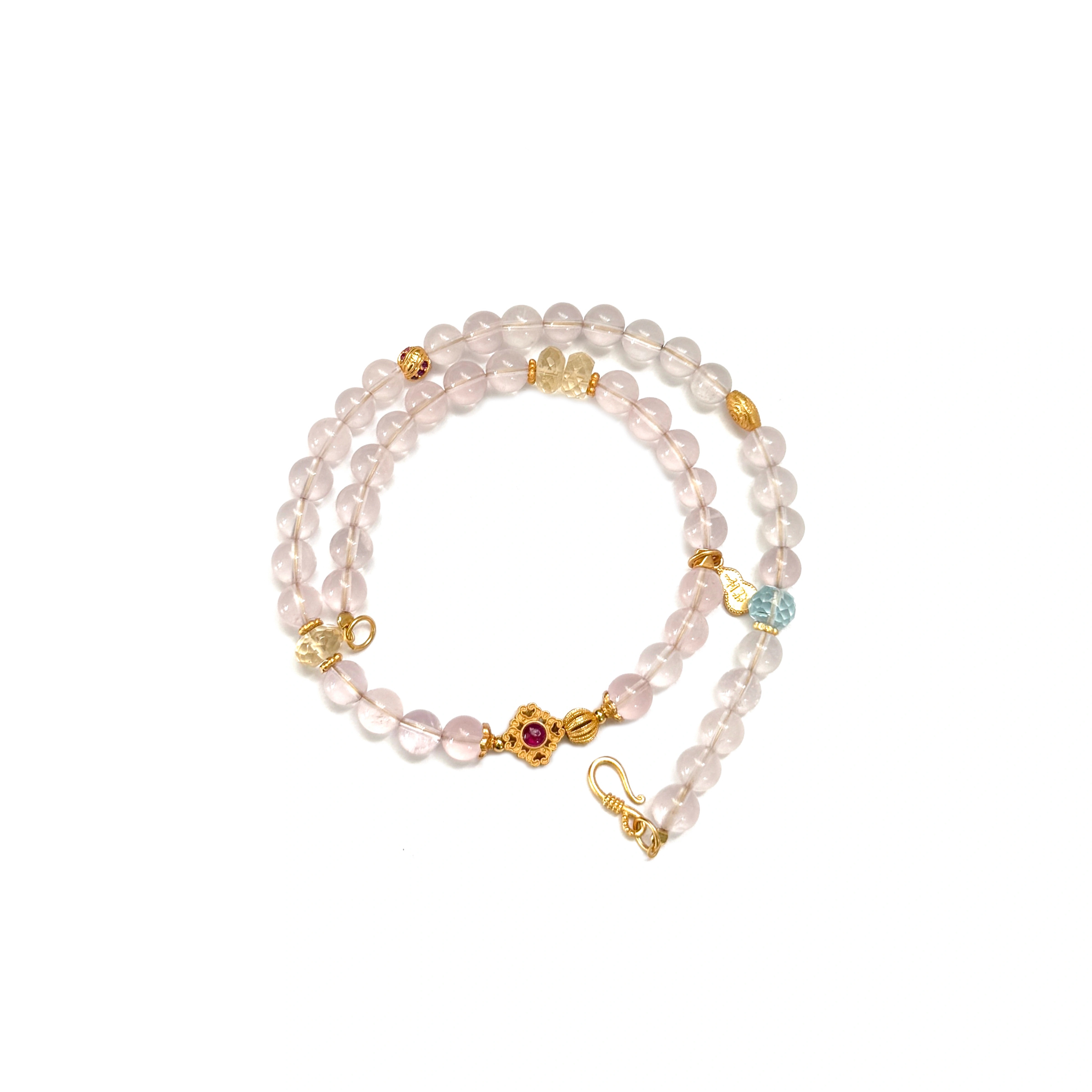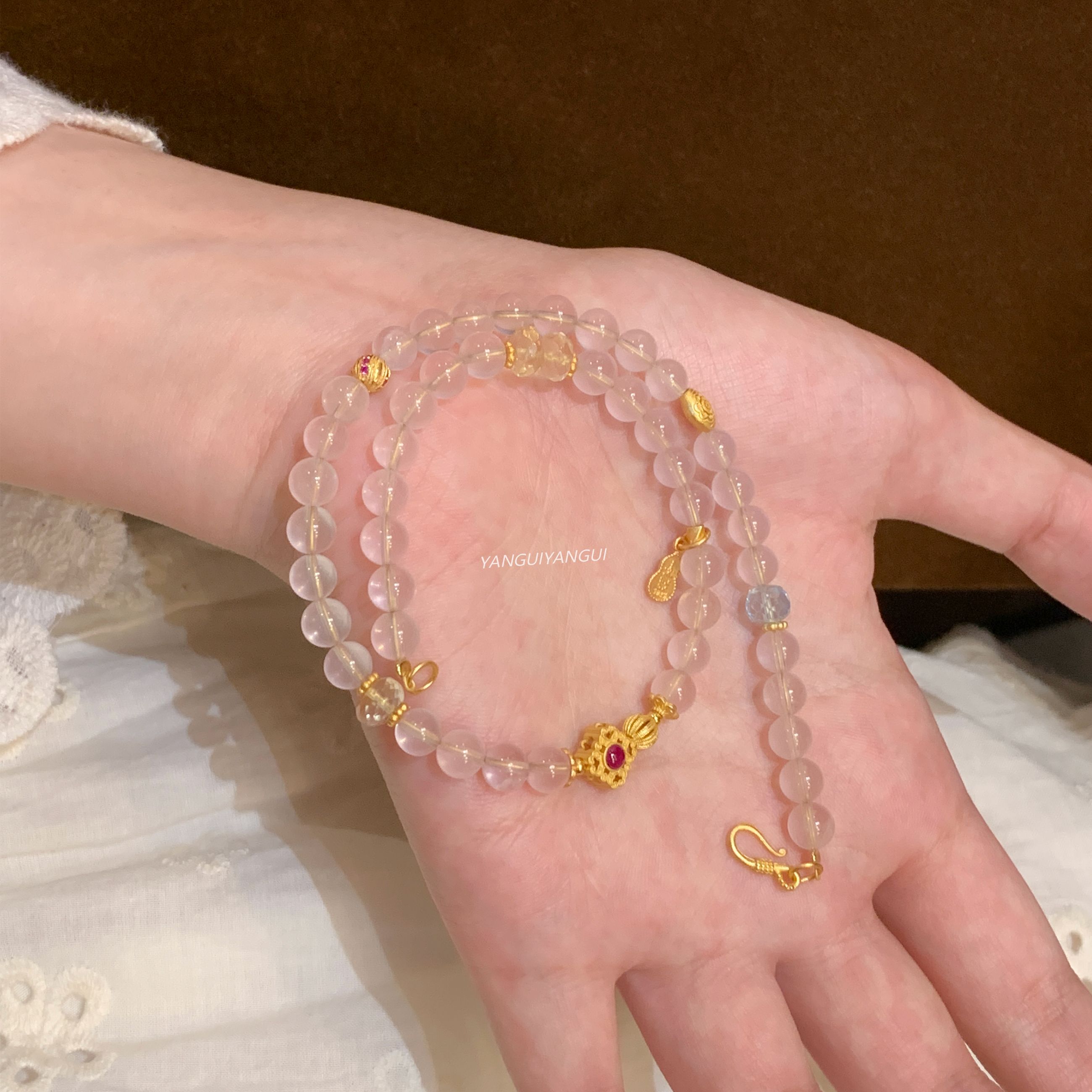 Yangui原创「粉水涟漪」国风新中式天然粉水晶托帕石叠戴百搭手链