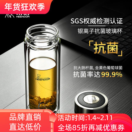 希诺单双层银离子抗菌玻璃杯鹅蛋男女大容量提环滤网泡茶喝水杯子