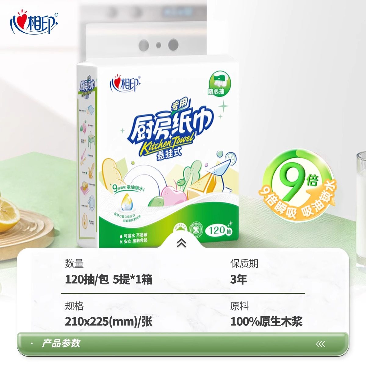 心相印悬挂式厨房用纸整箱实惠大包120抽吸油吸水厨房专用纸JX