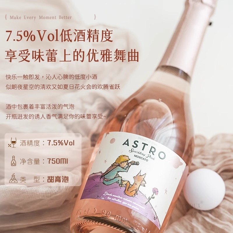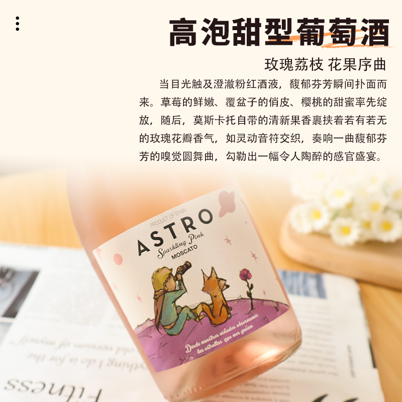 荔枝玫瑰香 西班牙进口莫斯卡托甜型起泡葡萄酒甜白微醺气泡果酒