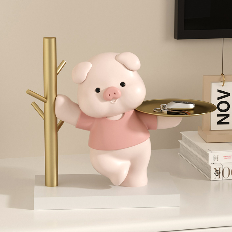小猪客厅入户玄关钥匙收纳桌面摆件家居装饰品置物送朋友乔迁礼品