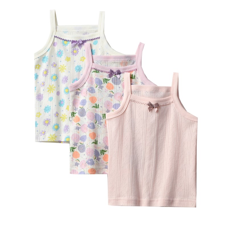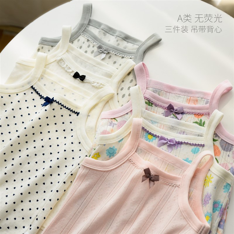 A类三件装 软软的 儿童纯棉网眼背心 女童薄款吊带打底 中小童