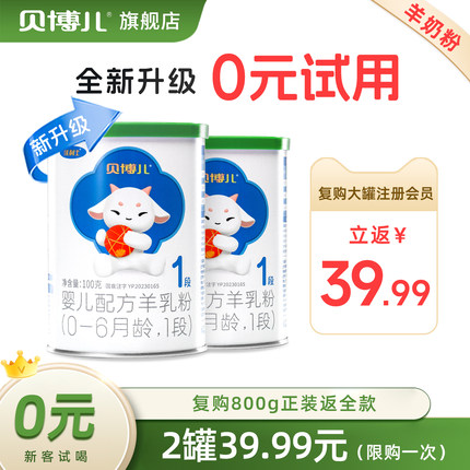 【绿盖0元试喝】1段贝博儿羊奶粉试用装100g*2罐