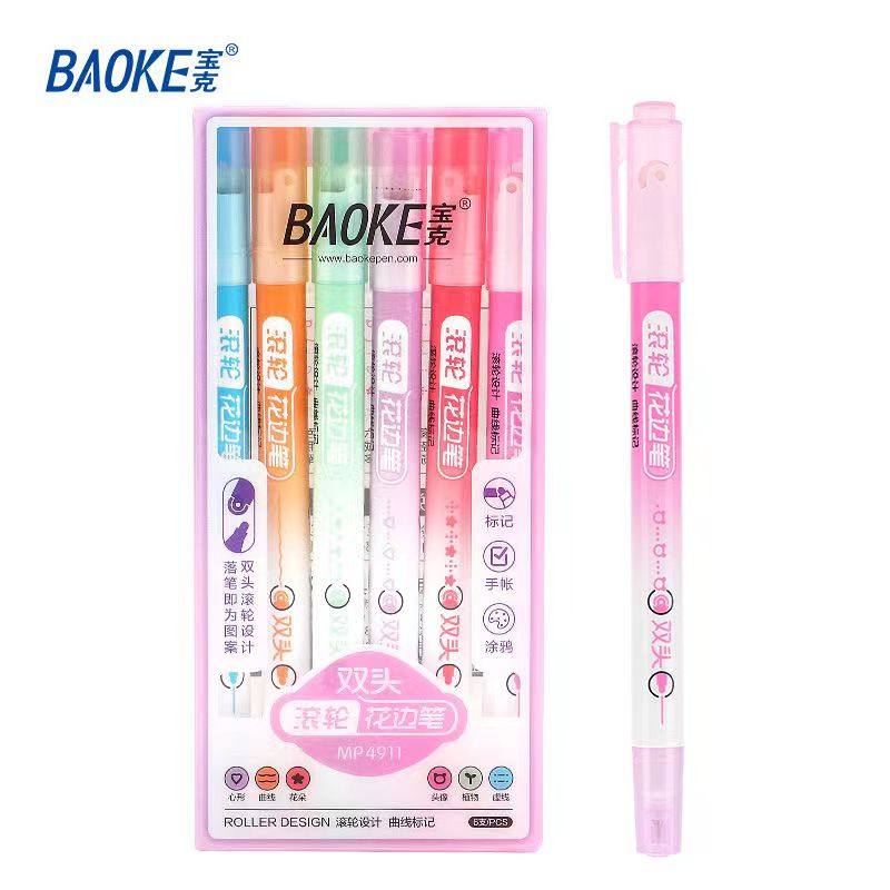 宝克4911针管双头花边笔滚轮手帐笔DIY花纹荧光笔学生手抄报标记