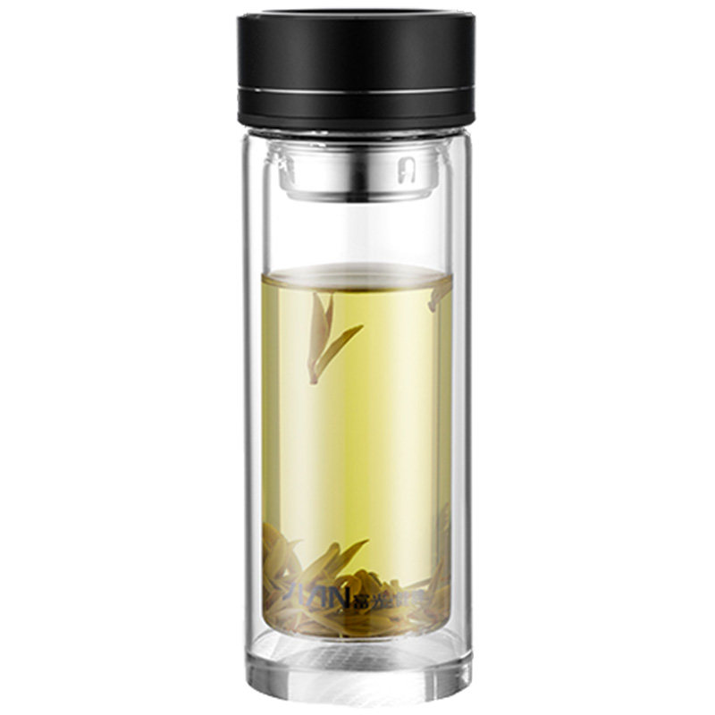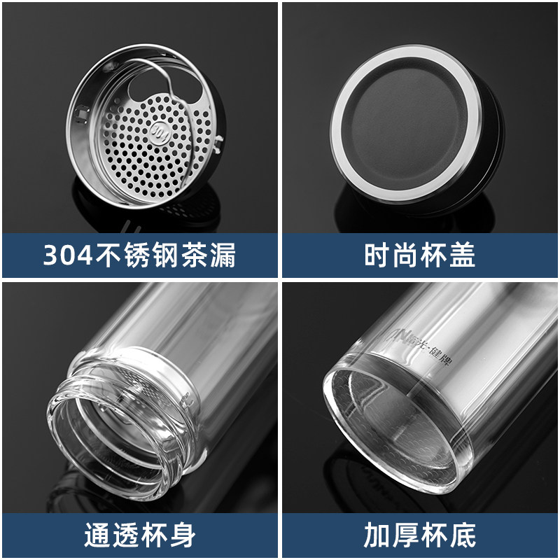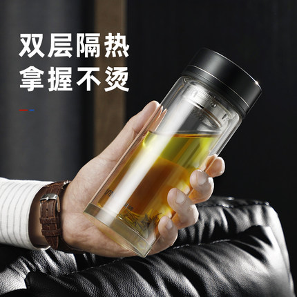 富光水杯男高档商务玻璃杯带盖茶水分离便携双层透明耐热泡茶杯子